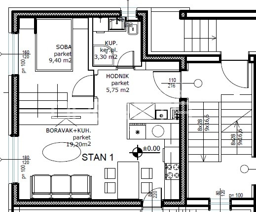 - dnevni boravak s blagovaonicom i kuhinjom u open-space konceptu