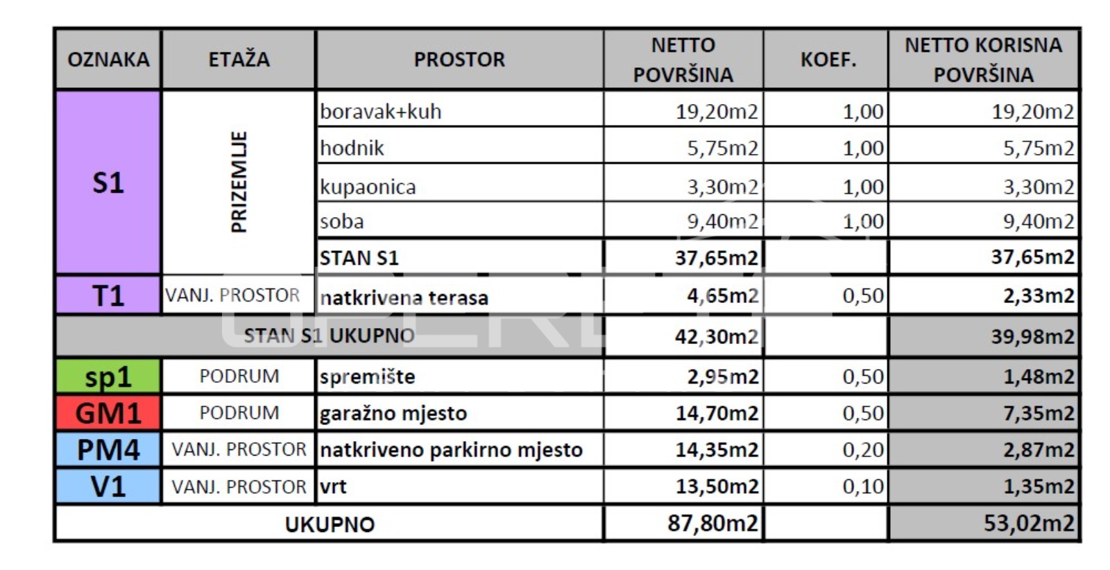 - garažno parkirno mjesto (14,70m2)