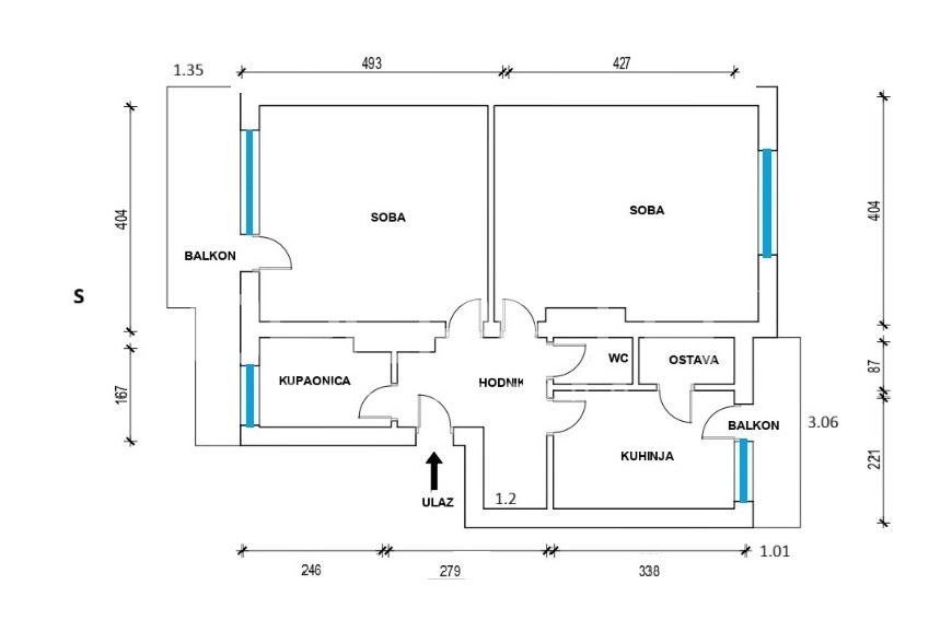 - Površina balkona: 8,00 m2