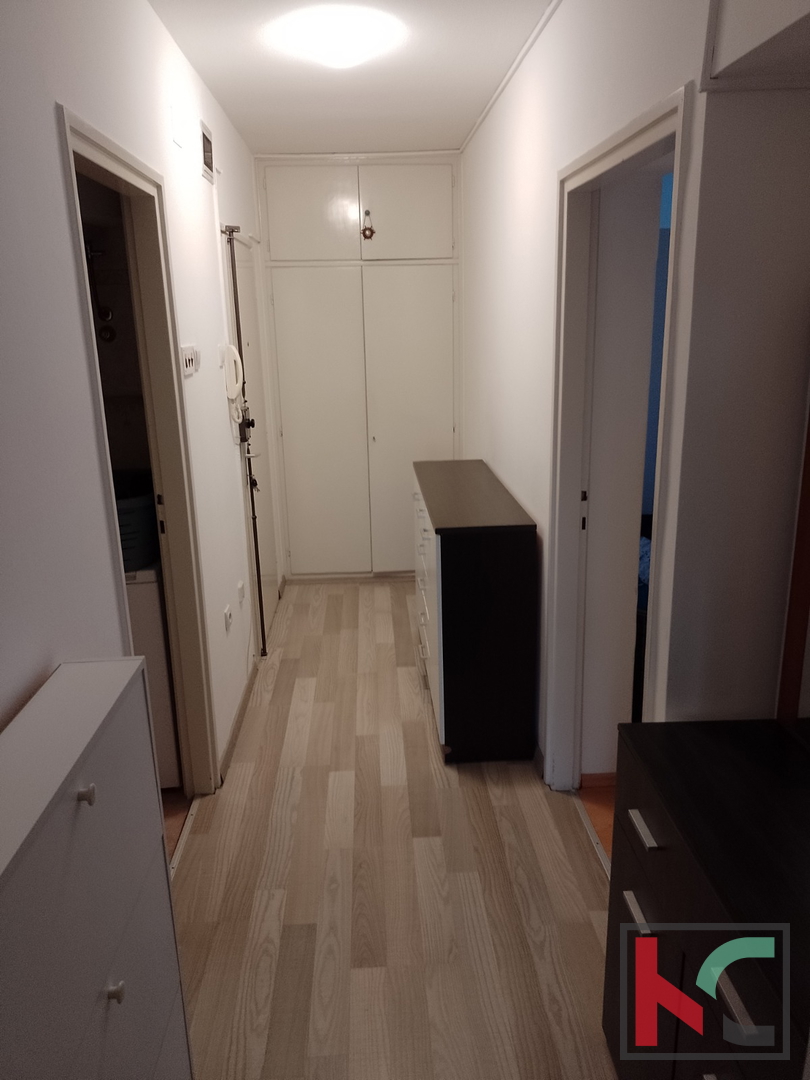 Na prodaju je dvosobni stan površine 54,72 m2, smješten na četvrtom katu zgrade starije novogradnje u atraktivnom i mirnom dijelu Verude. Stan ima funkcionalno organiziran dnevni prostor otvorenog koncepta koji objedinjuje kuhinju i blagovaonicu, jednu spavaću sobu, kupaonicu te balkon s kojeg se pruža otvoren pogled na kvart i more. Grijanje i hlađenje riješeno je putem nove peći na pelete i klima uređaja. Uz manja ulaganja mogućnost dobivanja dodatne spavaće sobe. Lokacija stana na Verudi omogućuje brz i jednostavan pristup svim važnim sadržajima te je odlično povezana s ostatkom grada. U neposrednoj blizini se nalaze škole, trgovine, javni prijevoz i šetnica uz more, što ovu nekretninu čini idealnim izborom kako za ugodan svakodnevni život, ali i kao kvalitetnu investiciju. Parkirno mjesto osigurano je na površini ispred zgrade rezerviranoj samo za stanare.