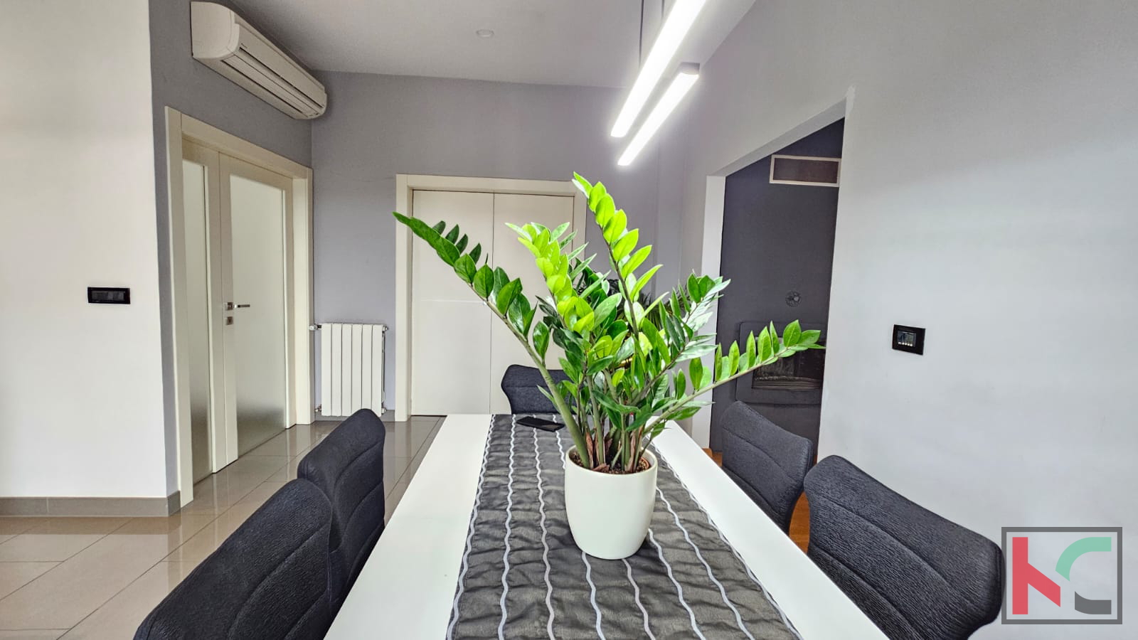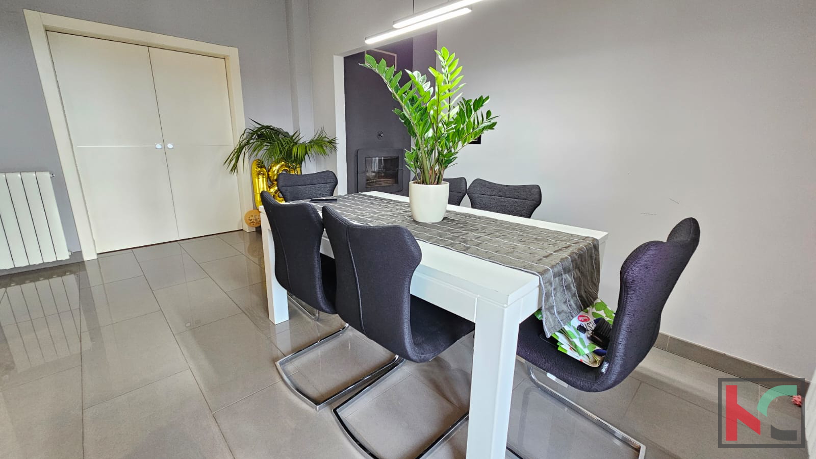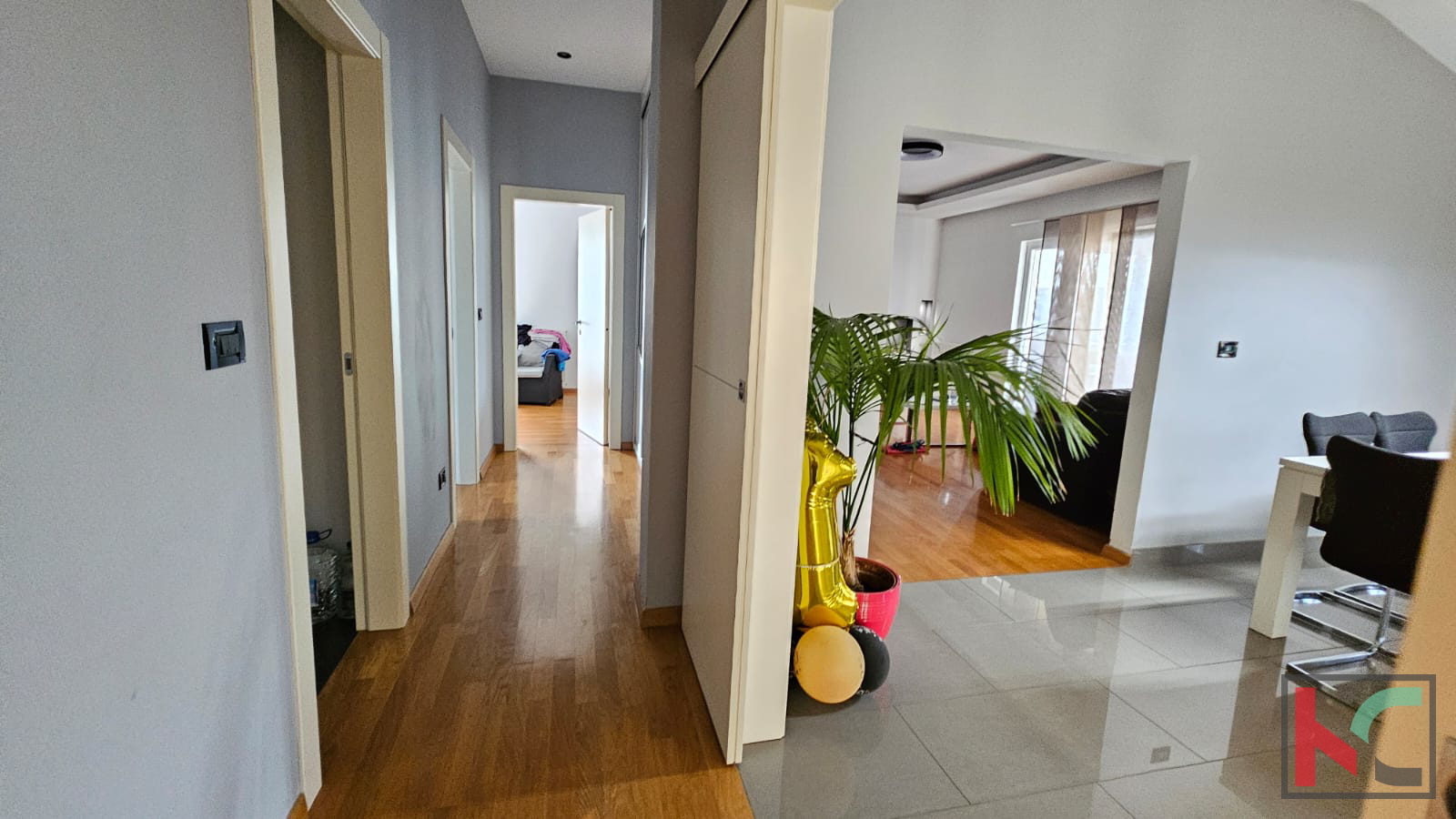 Prodajemo stan u manjoj stambenoj zgradi sa samo dva stana. Pripadaju mu i dva parkirna mjesta na okućnici zgrade. Nalazi se na prvom katu i sagrađen je -te godine. Kamenim stepeništem sa inox ogradom prilazimo nekretnini te hodnikom ulazimo u prostran i sunčan stan koji se sastoji od velikog dnevnog boravka, kuhinje i blagovaone sa kojih imamo izlaz na prostranu sunčanu terasu popločanu kamenom i ograđenu inoxom na kojoj se nalazi vrtna garnitura i roštilj. U dnevnom boravku nailazimo i na zidani kamin koji daje zimi poseban ugođaj i toplinu. U nastavku hodnika, imamo klizna vrata koja vode u drugi dio gdje se nalaze tri spavaće sobe, kupaonica i manja prostorija koji služi trenutno kao praona i ostava. Zgrada ima novu fasadu, PVC stolarija je po cijelom stanu, klimatske jedinice, vrhunska keramika i parket. Izuzetno je ugodan, prostran i idealan za veliku obitelj. Namještaj se prodaje u dogovoru sa kupcima.
