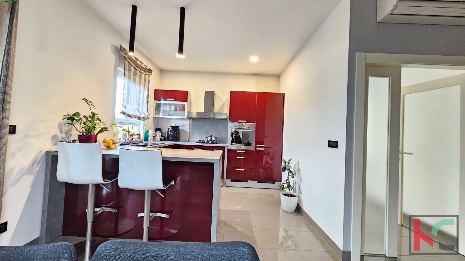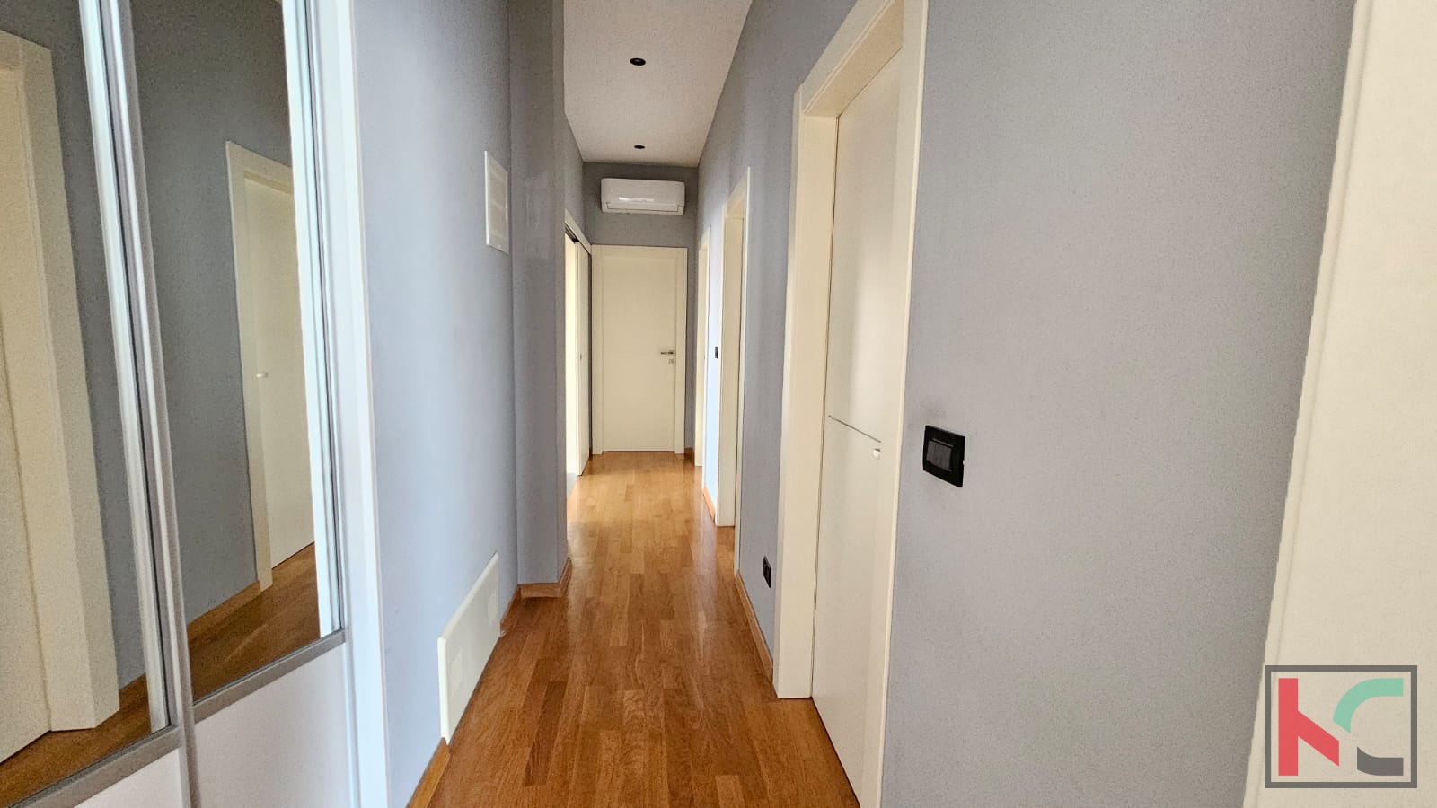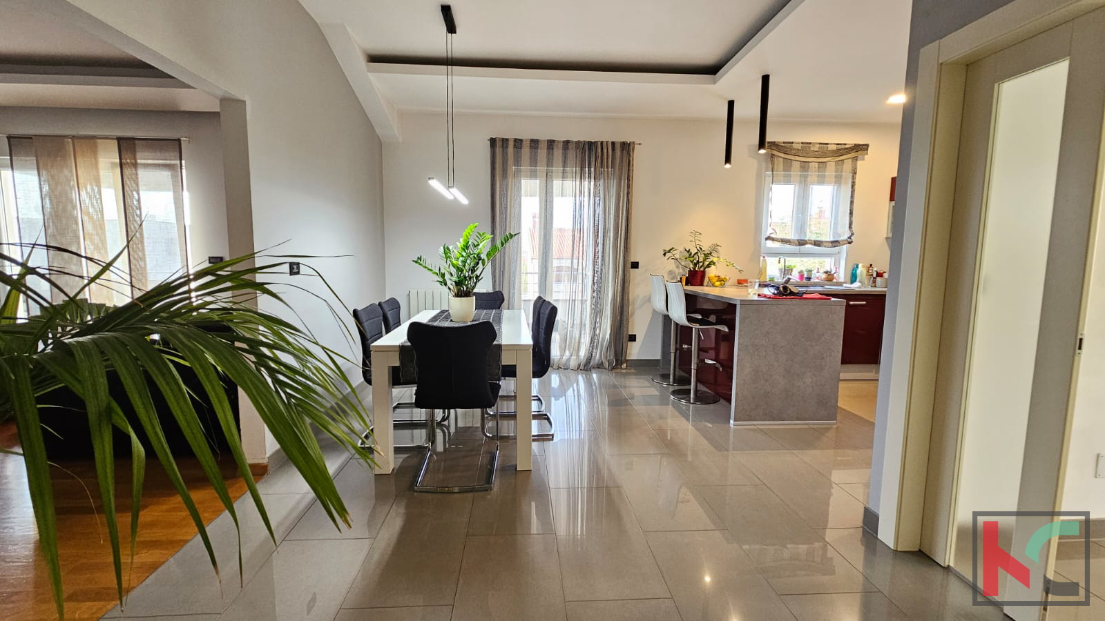 Prodajemo stan u manjoj stambenoj zgradi sa samo dva stana. Pripadaju mu i dva parkirna mjesta na okućnici zgrade. Nalazi se na prvom katu i sagrađen je -te godine. Kamenim stepeništem sa inox ogradom prilazimo nekretnini te hodnikom ulazimo u prostran i sunčan stan koji se sastoji od velikog dnevnog boravka, kuhinje i blagovaone sa kojih imamo izlaz na prostranu sunčanu terasu popločanu kamenom i ograđenu inoxom na kojoj se nalazi vrtna garnitura i roštilj. U dnevnom boravku nailazimo i na zidani kamin koji daje zimi poseban ugođaj i toplinu. U nastavku hodnika, imamo klizna vrata koja vode u drugi dio gdje se nalaze tri spavaće sobe, kupaonica i manja prostorija koji služi trenutno kao praona i ostava. Zgrada ima novu fasadu, PVC stolarija je po cijelom stanu, klimatske jedinice, vrhunska keramika i parket. Izuzetno je ugodan, prostran i idealan za veliku obitelj. Namještaj se prodaje u dogovoru sa kupcima.