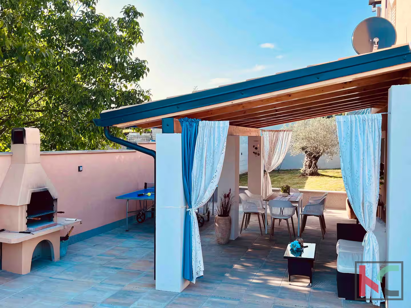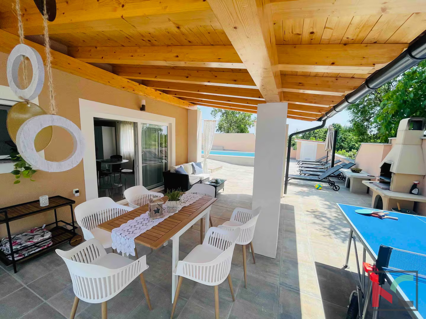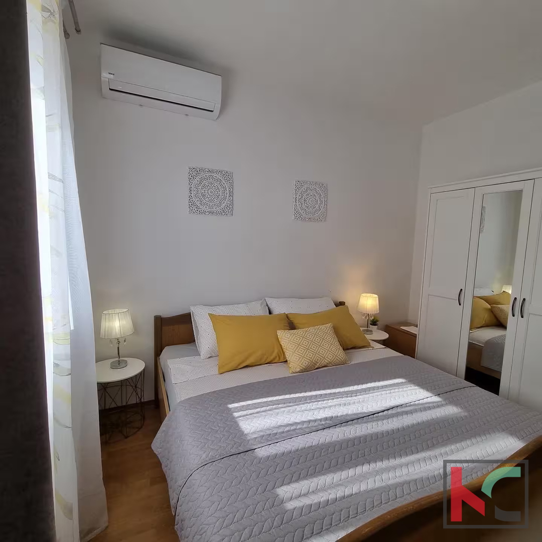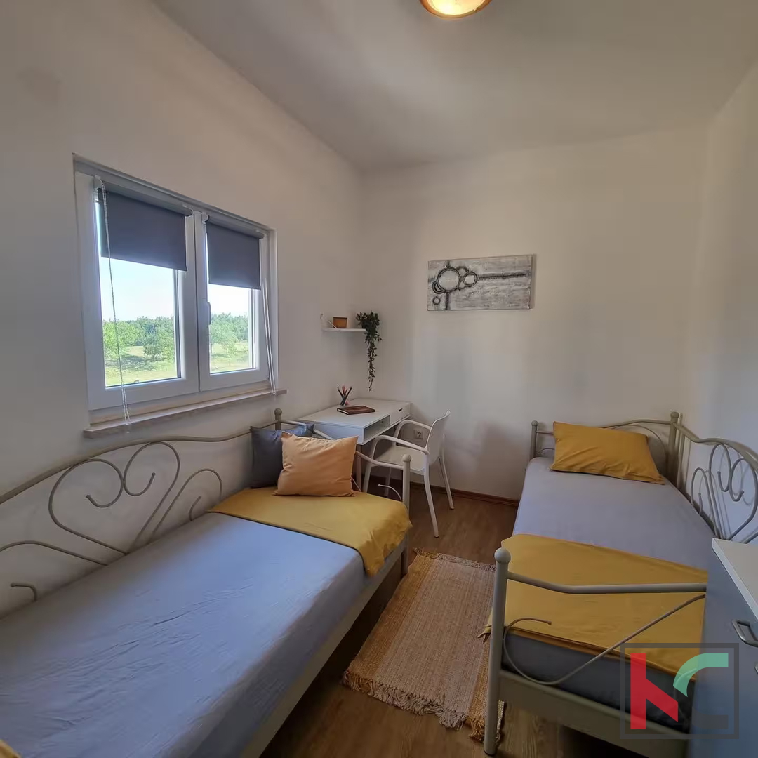 In einer kleinen Ortschaft unweit von Barban befindet sich ein schönes, neueren Datums freistehendes Haus mit einer Fläche von 140 m2 auf einem großzügigen Grundstück von 850 m2. Das Haus ist in Erdgeschoss und ersten Stock unterteilt, wobei jede Etage eine separate Wohneinheit darstellt, was zusätzliche Flexibilität und die Möglichkeit der doppelten Nutzung des Raumes bietet. Das Erdgeschoss besteht aus einem offenen Konzept, das den Eingangsbereich, die Küche und das Wohnzimmer sowie ein Schlafzimmer und ein Badezimmer verbindet. Zudem gibt es eine geräumige überdachte Terrasse mit Blick ins Grüne. Die Terrasse bietet eine angenehme Entspannungszone mit Grill, ideal zum Relaxen und für gesellige Stunden an warmen Tagen. Im Anschluss befindet sich ein Pool, umgeben von gepflegten Grünflächen. Der erste Stock bietet ein großes Wohnzimmer mit Küche, ein Badezimmer und zwei komfortable Schlafzimmer, was ausreichend Platz für Familie oder Gäste schafft. Im Hof befinden sich mehrere Parkplätze, darunter zwei überdachte, und das gesamte Haus ist vollständig klimatisiert, was einen angenehmen Aufenthalt das ganze Jahr über gewährleistet. Das Haus wurde im Jahr komplett renoviert und wird möbliert verkauft. Diese Immobilie bietet Komfort, Funktionalität und vollständige Privatsphäre, was sie zu einer idealen Gelegenheit für ein Familienhaus oder eine Investition macht.