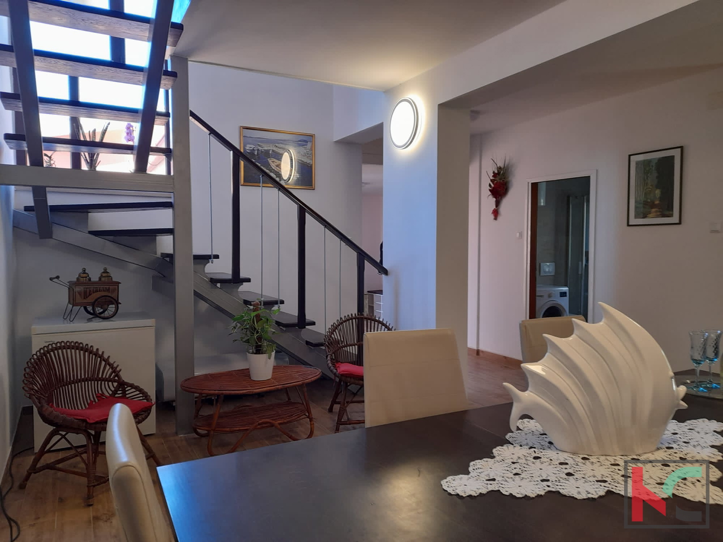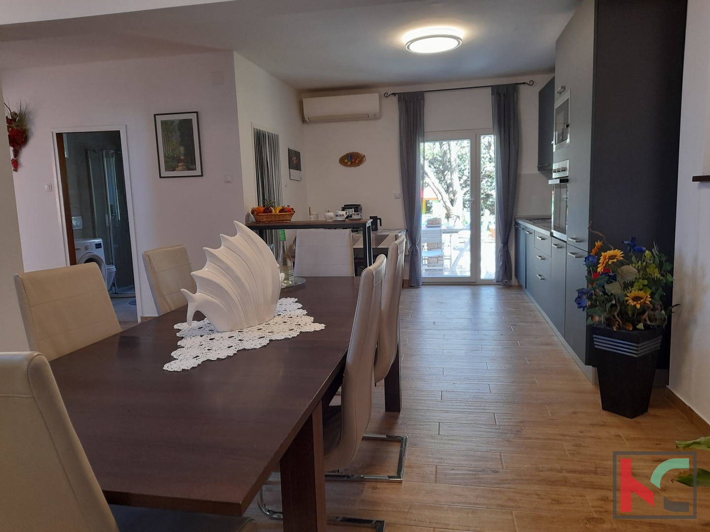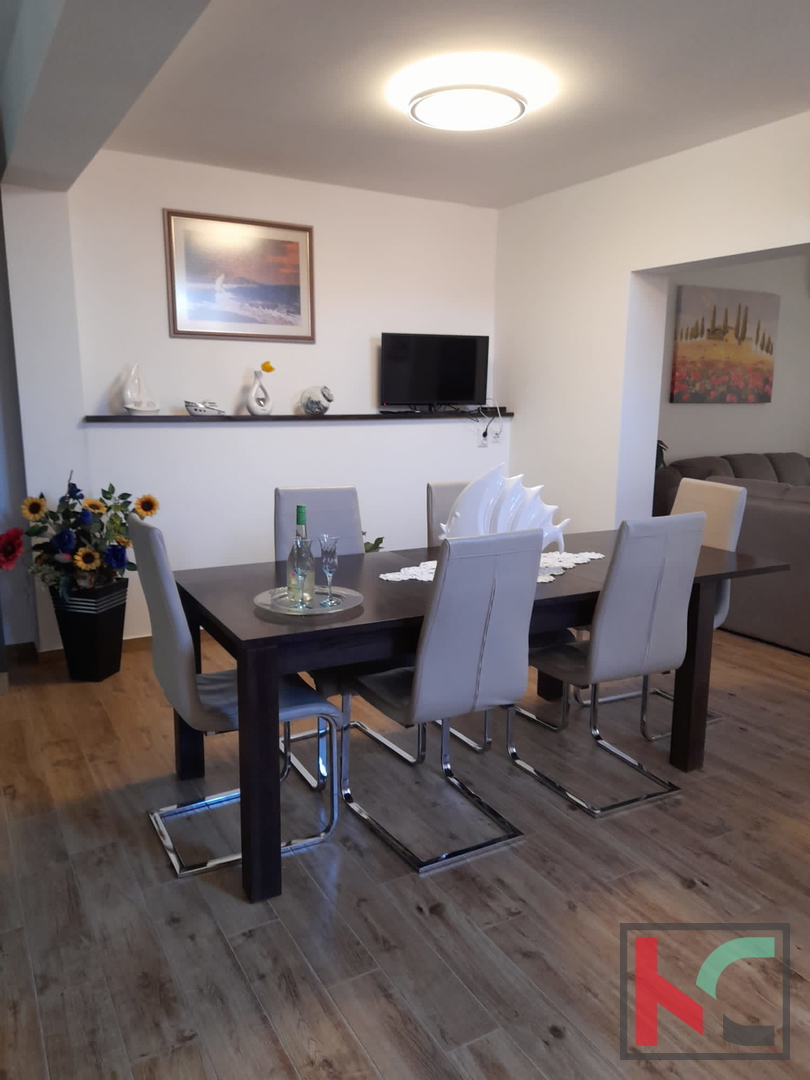 Zum Verkauf steht ein renoviertes Haus mit Pool und gepflegtem Grundstück an einer sehr attraktiven Lage in Fažana. Das Haus hat eine Gesamtfläche von 200 m², wovon ca. 165 m² Wohnfläche sind, die sich auf das Erdgeschoss und den ersten Stock verteilen. Im Erdgeschoss befindet sich die Diele, die in eine geräumige Küche mit Essbereich, ein separates großes Wohnzimmer, ein Badezimmer und einen Abstellraum führt, während sich im ersten Stock 4 Schlafzimmer befinden, von denen zwei Zugang zu einem großen Balkon mit herrlichem Blick auf das Meer und die Brijuni-Inseln haben, sowie zwei weitere Badezimmer. Von der Küche aus gelangt man auf die Terrasse und in den grünen Garten mit Pool und schön gestaltetem Sonnendeck. Das Wohnzimmer ist sehr hell und verfügt über eine zusätzliche Terrasse. Im gepflegten Garten der Immobilie befindet sich zudem ein Grill. Das Haus ist mit PVC- und Aluminiumfenstern, Klimaanlagen ausgestattet und komplett möbliert und eingerichtet. Der Großteil der Renovierung erfolgte im Jahr . Möbel und Geräte bleiben nach Vereinbarung. Ein Vorteil dieses Hauses ist die Garage mit einem zusätzlichen Raum, von dem aus man direkt in den Wohnbereich gelangt. Diese einzigartige Immobilie an Top-Lage ist eine Gelegenheit für ein angenehmes Wohnen oder als Investition für touristische Zwecke. Die Lage ist sehr ruhig, mit allen Einrichtungen in fußläufiger Entfernung. Das Zentrum von Fažana, die Uferpromenade sowie die schönen, gepflegten Strände sind etwa 500 Meter entfernt. Die Stadt Pula ist 5 km entfernt. Entfernung zum Flughafen: 8 km. Entfernung zur Autobahn: 3,5 km.