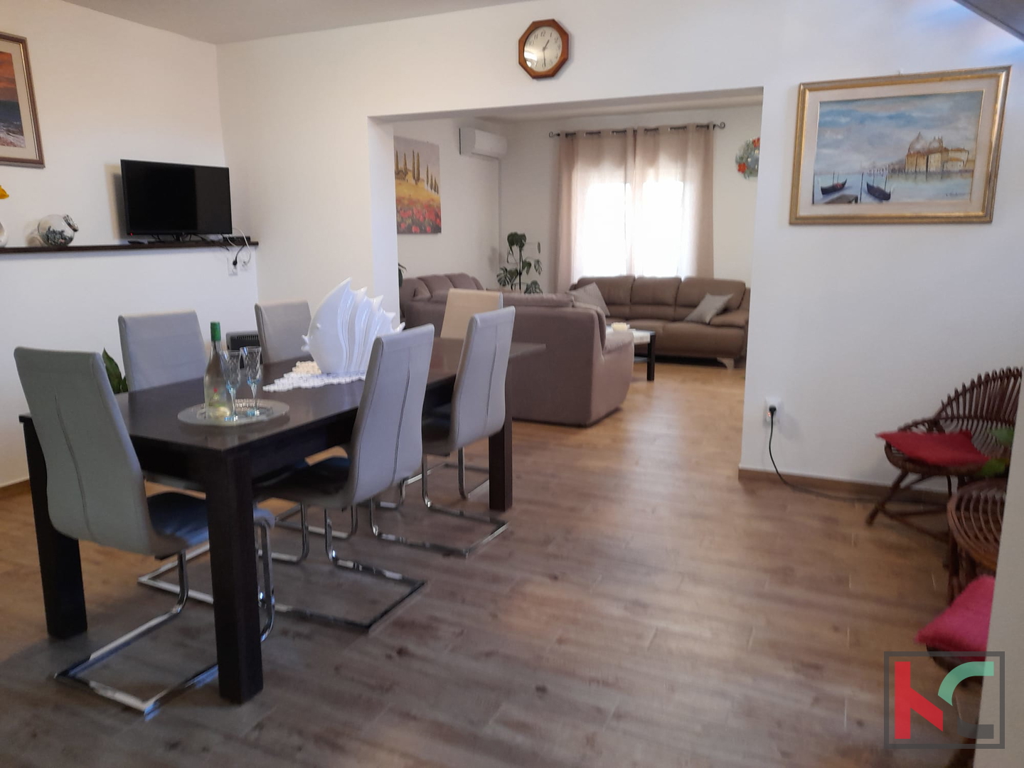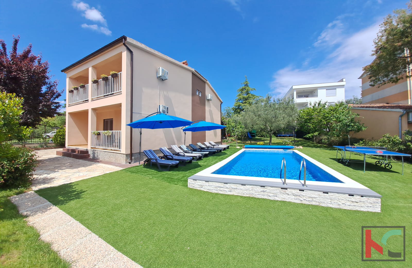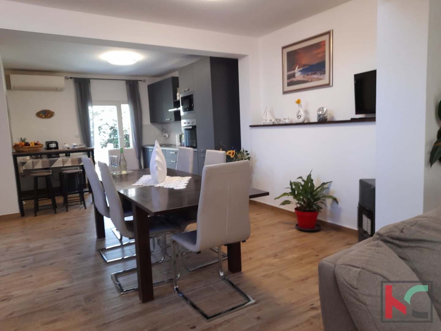 Zum Verkauf steht ein renoviertes Haus mit Pool und gepflegtem Grundstück an einer sehr attraktiven Lage in Fažana. Das Haus hat eine Gesamtfläche von 200 m², wovon ca. 165 m² Wohnfläche sind, die sich auf das Erdgeschoss und den ersten Stock verteilen. Im Erdgeschoss befindet sich die Diele, die in eine geräumige Küche mit Essbereich, ein separates großes Wohnzimmer, ein Badezimmer und einen Abstellraum führt, während sich im ersten Stock 4 Schlafzimmer befinden, von denen zwei Zugang zu einem großen Balkon mit herrlichem Blick auf das Meer und die Brijuni-Inseln haben, sowie zwei weitere Badezimmer. Von der Küche aus gelangt man auf die Terrasse und in den grünen Garten mit Pool und schön gestaltetem Sonnendeck. Das Wohnzimmer ist sehr hell und verfügt über eine zusätzliche Terrasse. Im gepflegten Garten der Immobilie befindet sich zudem ein Grill. Das Haus ist mit PVC- und Aluminiumfenstern, Klimaanlagen ausgestattet und komplett möbliert und eingerichtet. Der Großteil der Renovierung erfolgte im Jahr . Möbel und Geräte bleiben nach Vereinbarung. Ein Vorteil dieses Hauses ist die Garage mit einem zusätzlichen Raum, von dem aus man direkt in den Wohnbereich gelangt. Diese einzigartige Immobilie an Top-Lage ist eine Gelegenheit für ein angenehmes Wohnen oder als Investition für touristische Zwecke. Die Lage ist sehr ruhig, mit allen Einrichtungen in fußläufiger Entfernung. Das Zentrum von Fažana, die Uferpromenade sowie die schönen, gepflegten Strände sind etwa 500 Meter entfernt. Die Stadt Pula ist 5 km entfernt. Entfernung zum Flughafen: 8 km. Entfernung zur Autobahn: 3,5 km.