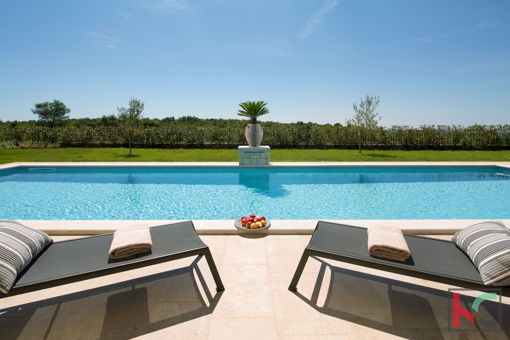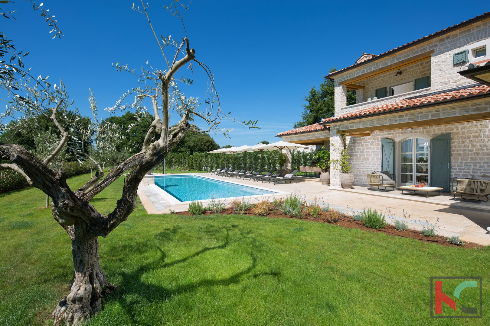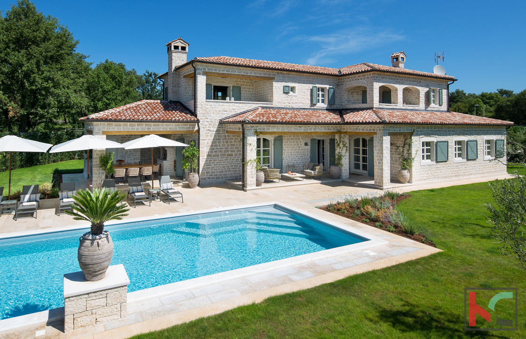 Wir bieten Ihnen die Möglichkeit, Eigentümer einer bezaubernden Villa zu werden, die Sie mit Charme und Luxus überzeugen wird. Dieses schöne Haus mit einer Fläche von 372 m2 befindet sich auf einem großzügigen Grundstück von m2. Haupteigenschaften: Geräumige Villa mit Pool Fläche der Villa: 372 m2 Grundstück: m2 5 geräumige Schlafzimmer mit eigenem Bad Luxuriöses Wohnzimmer mit Kamin Rustikale, moderne Küche Esszimmer mit Sitzgelegenheiten für 10 Personen Großzügige Terrassen mit Blick ins Grüne und auf das Meer Erdgeschoss: Im Erdgeschoss finden Sie ein geräumiges Wohnzimmer mit gemütlichem Kamin, ein Esszimmer mit ausreichend Platz für 10 Personen, eine Toilette und zwei elegant eingerichtete „en suite“-Schlafzimmer mit eigenem Bad, eines mit Doppelbett und das andere mit zwei getrennten Betten. Hier finden Sie auch eine gut ausgestattete rustikale Küche, die selbst die anspruchsvollsten kulinarischen Wünsche erfüllt. Boden: Im Obergeschoss befinden sich drei geräumige Doppelzimmer mit jeweils eigenem Bad und einem Doppelbett. Zwei dieser Zimmer haben Zugang zu großzügigen Terrassen mit einem unglaublichen Blick auf das Grün und das Meer sowie auf die malerische Stadt Rovinj in der Ferne. Hof: Das Gelände dieser Villa macht sie zu etwas Besonderem. Genießen Sie ein Sonnenbad auf Liegestühlen, gönnen Sie sich Momente der Entspannung mit spannenden Büchern oder bereiten Sie eine köstliche Mahlzeit mit Zutaten aus dem nahegelegenen Ökogarten zu. Der weitläufige Garten bietet auch einen wunderschönen Swimmingpool, der einer der Hauptvorteile dieses außergewöhnlichen Hauses ist. Sportanlagen: Neben dem Swimmingpool verfügt diese Villa auch über einen beeindruckend ausgestatteten Sportbereich. Hier finden Sie einen Multifunktionsplatz für Handball, Basketball und Fußball, einen Volleyballplatz, zwei Tennisplätze, zwei Bocciaplätze, eine Tischtennisplatte, Outdoor-Fitness und einen riesigen Kinderspielplatz. Diese Villa ist ideal für Familienleben und Entspannung. Für weitere Informationen zum Verkauf können Sie uns gerne kontaktieren.