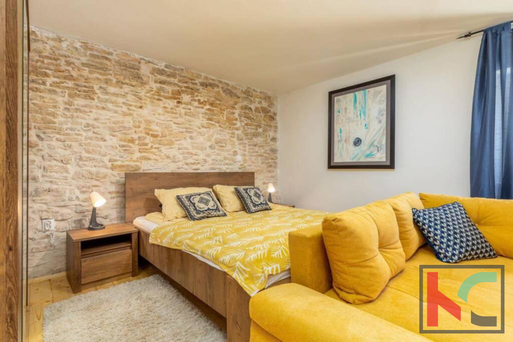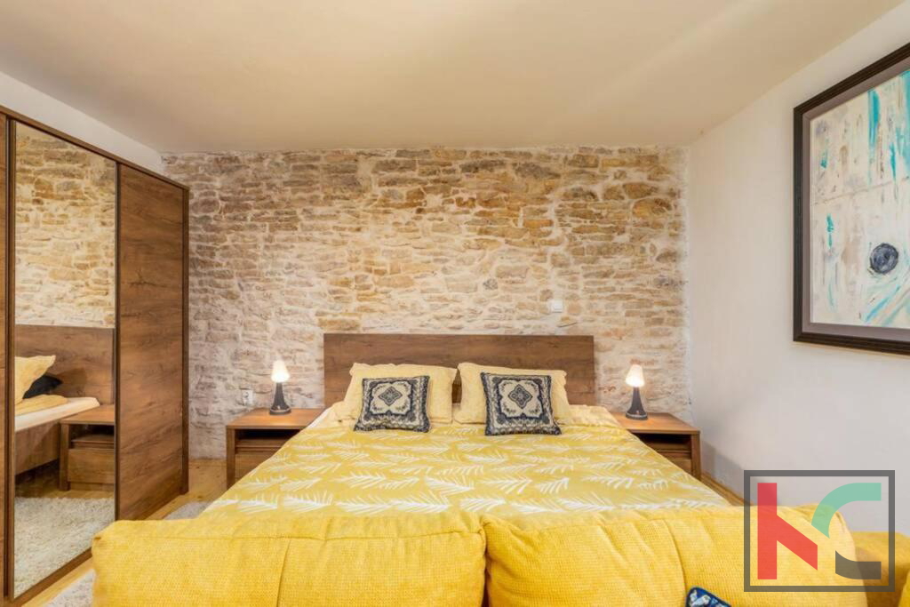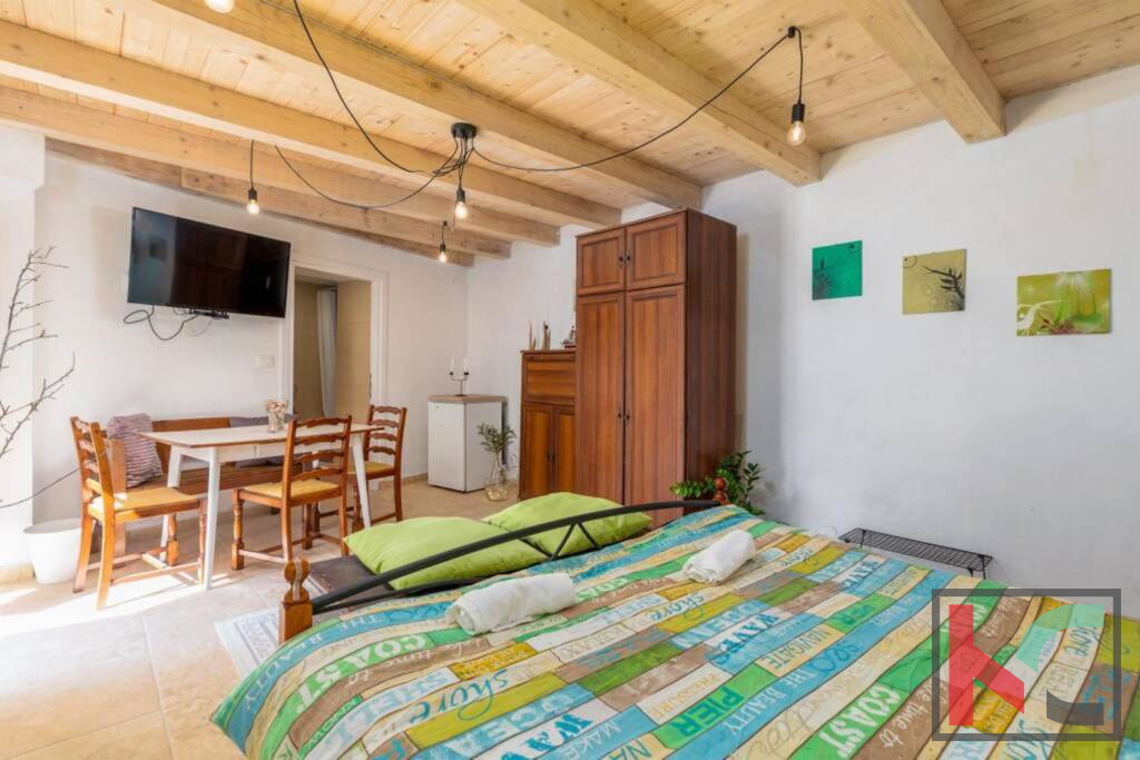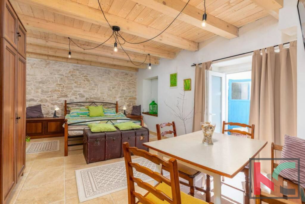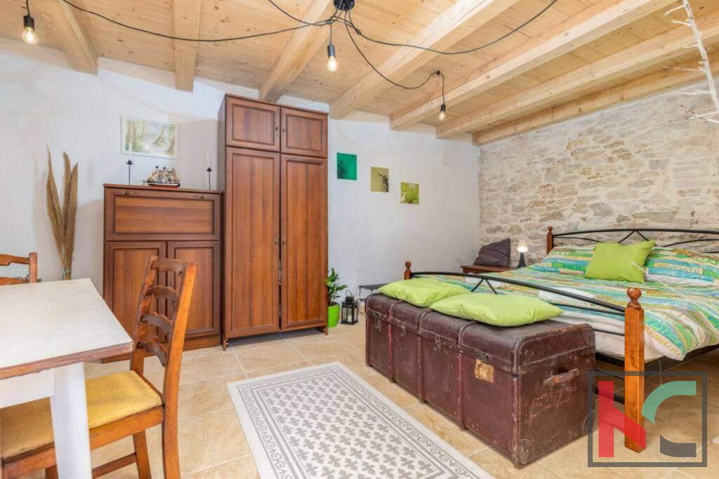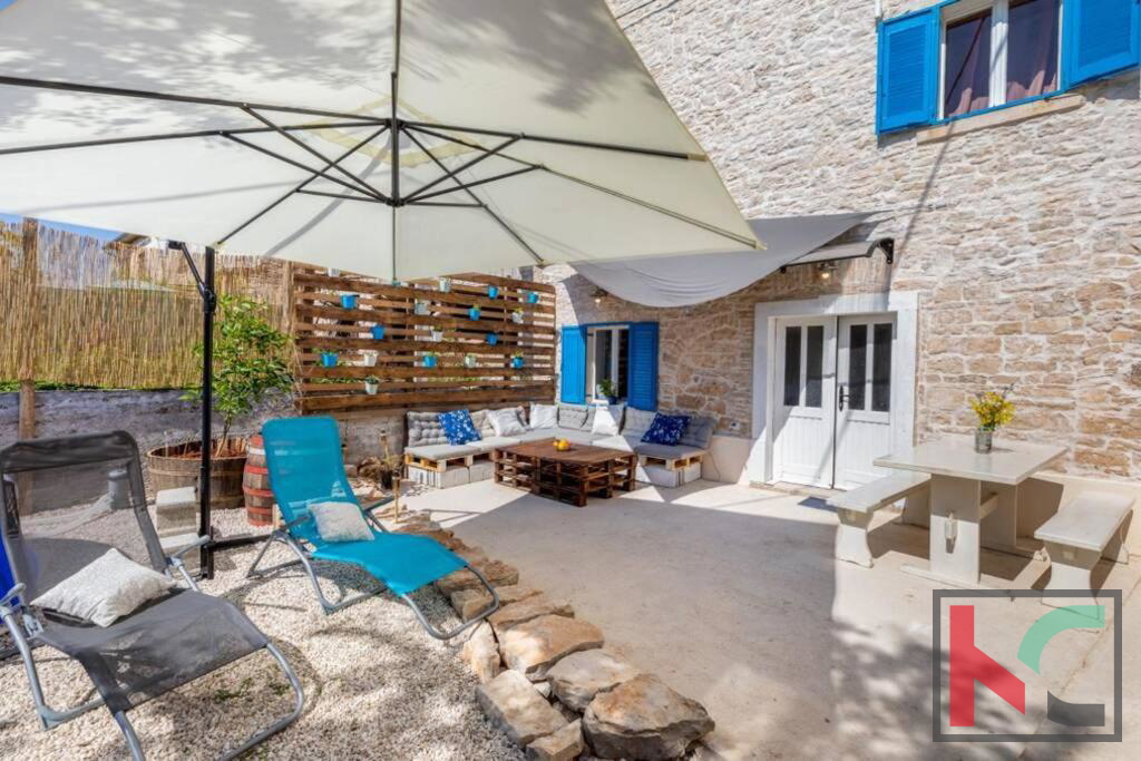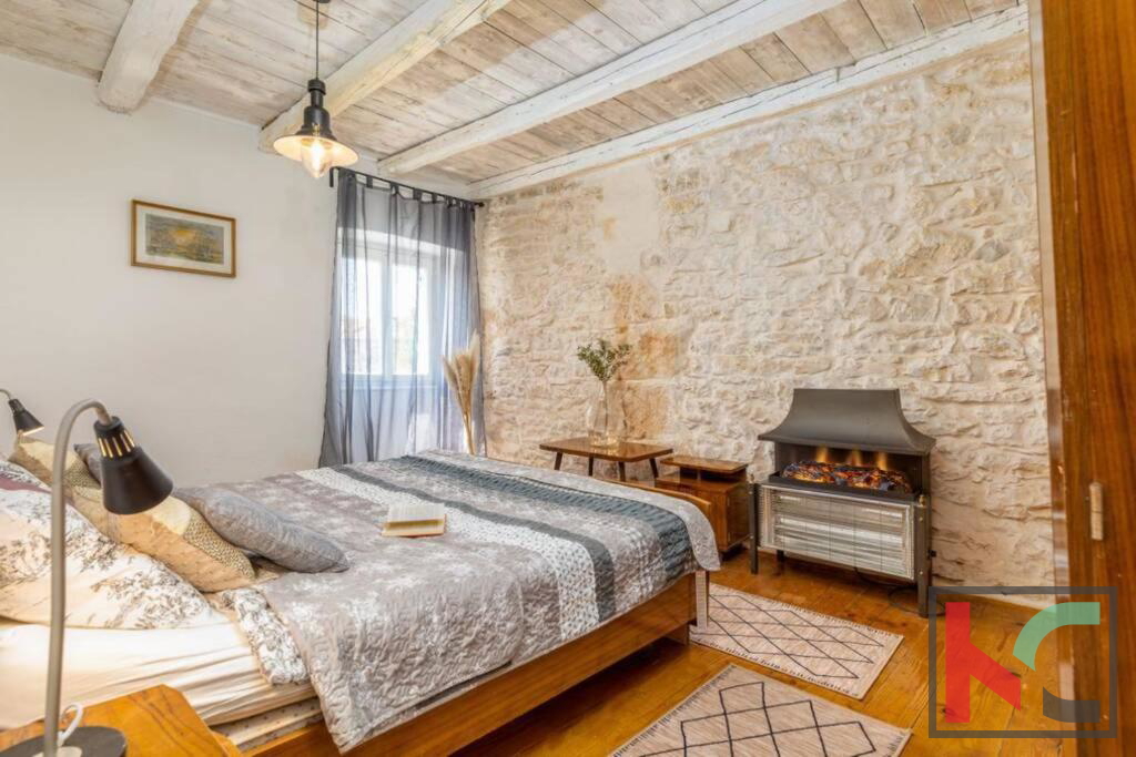 Zum Verkauf steht ein Steinhaus mit erkennbar rustikalem Charme, gelegen in einem ruhigen Dorf in der Nähe von Orbanić. Dieses schöne Haus hat eine Gesamtfläche von 120m2 und erstreckt sich über drei Etagen. Es wurde adaptiert und verfügt über komplett neue Strom- und Wasserinstallationen. Im Erdgeschoss befinden sich eine Küche und ein Wohnzimmer mit angeschlossenem Esszimmer. Im zweiten Teil des Erdgeschosses befindet sich eine separate Wohnung von 24m2. Es besteht aus einem Schlafzimmer und einem Badezimmer, außerdem sind Kücheneinrichtungen eingebaut. Im ersten Stock befinden sich drei komfortable Schlafzimmer und ein Badezimmer. Das Dachgeschoss ist derzeit noch nicht vollständig möbliert, verfügt aber über alle notwendigen Sanitär- und Elektroinstallationen. Der Zugang zum Dachgeschoss ist über eine Treppe im Haus oder über eine Außentreppe möglich. Es hat Zugang zu einer großzügigen Terrasse mit Blick auf die Natur und die wunderschöne Umgebung. Mit bestimmten Investitionen kann das Dachgeschoss zu einer separaten Wohnung oder einem zusätzlichen Raum mit vielfältigen Nutzungsmöglichkeiten werden. Für die Beheizung sorgen zwei Klimageräte und ein Holzofen. Im Garten mit einer Gesamtfläche von 100 m2 gibt es einen Außenbereich zum Entspannen, eine Sommerküche im istrischen Stil mit Kamin, eine kleine Liegewiese, einen mobilen Pool und einen kleinen Garten. Der Hof bietet ausreichend Platz für den Bau eines Schwimmbades. Diese Immobilie stellt zusammen mit einigen kleineren Investitionen eine ideale Gelegenheit für eine Investition zu touristischen Zwecken oder für ein ruhiges Familienleben in guter Lage dar.