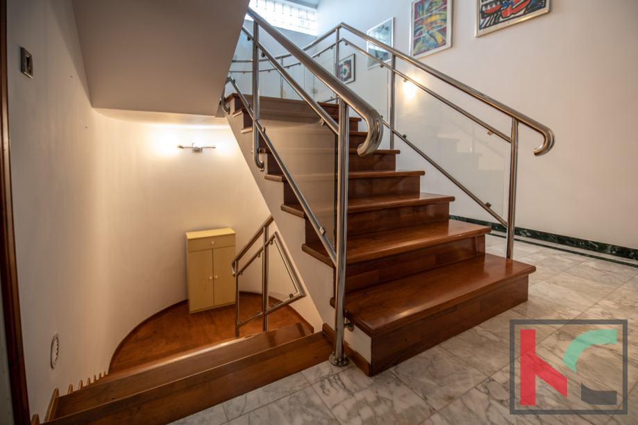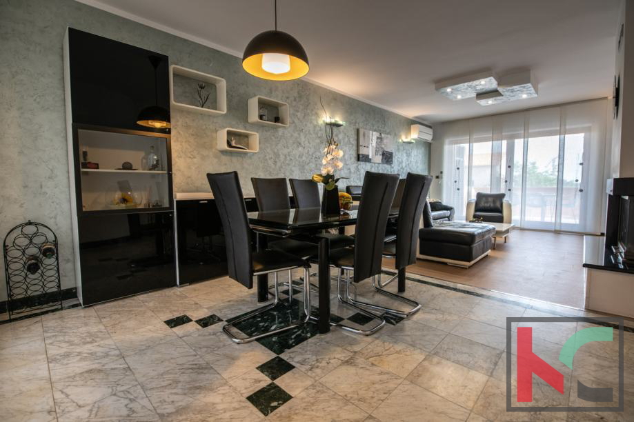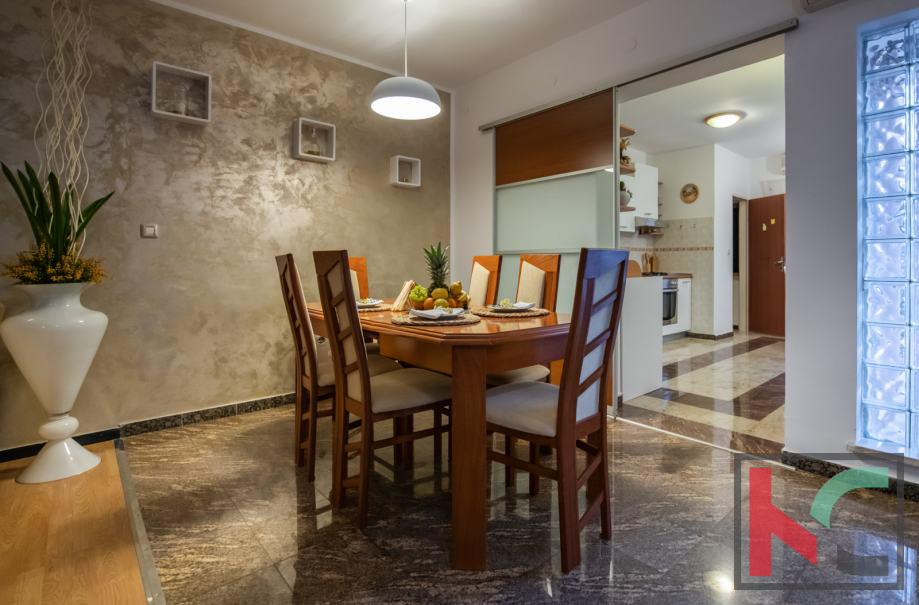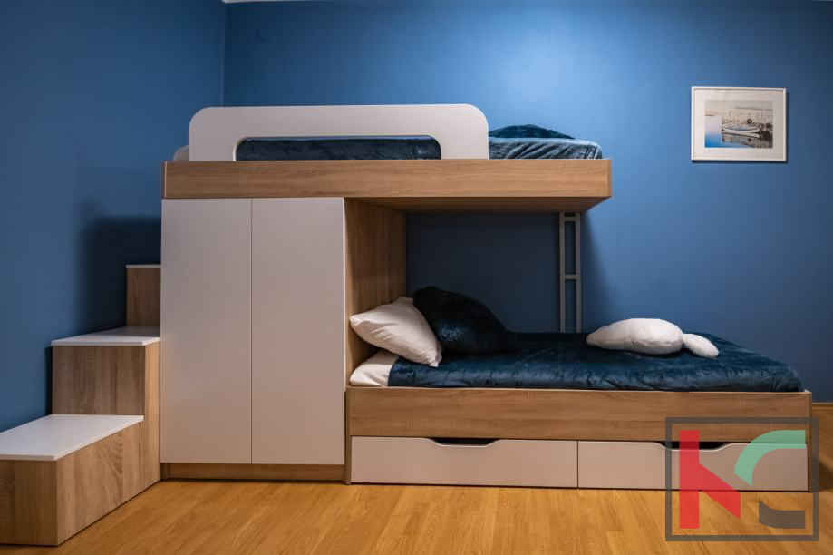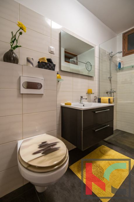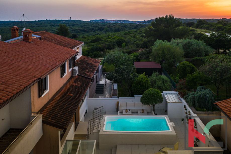 Ein Haus zum Verkauf in Vinkuran, mit einer Gesamtwohnfläche von 210 m2, nur 300 Meter vom Meer entfernt, mit zwei Wohnungen und einem Garten von 200 m2. Die erste Wohnung befindet sich im Erdgeschoss des Wohngebäudes und besteht aus einer Küche und einem Wohnzimmer, zwei Schlafzimmern, einem Badezimmer und einer Toilette mit Zugang zur vorderen und hinteren Terrasse, wo sich auch ein Whirlpool mit Liegewiese befindet . Die zweite Wohnung erstreckt sich über zwei Etagen, die durch eine luxuriöse Holztreppe verbunden sind, und besteht aus einer Küche mit Speisekammer, einem geräumigen Wohnzimmer, zwei Badezimmern und drei Schlafzimmern. Auf der hinteren Terrasse gibt es einen Whirlpool mit Liegewiese und auf der Vorderseite gibt es eine große Terrasse, Eingangsstufen und eine Garage. Beide Wohnungen verfügen über zwei Klimaanlagen und einen Kamin im Wohnzimmer. Das Haus ist mit 4 Sternen kategorisiert, befindet sich in einer äußerst guten Lage in der Nähe des Meeres und ist aufgrund seiner Geräumigkeit eine ideale Immobilie zum Wohnen oder für eine gute touristische Vermietung und Kapitalrendite.