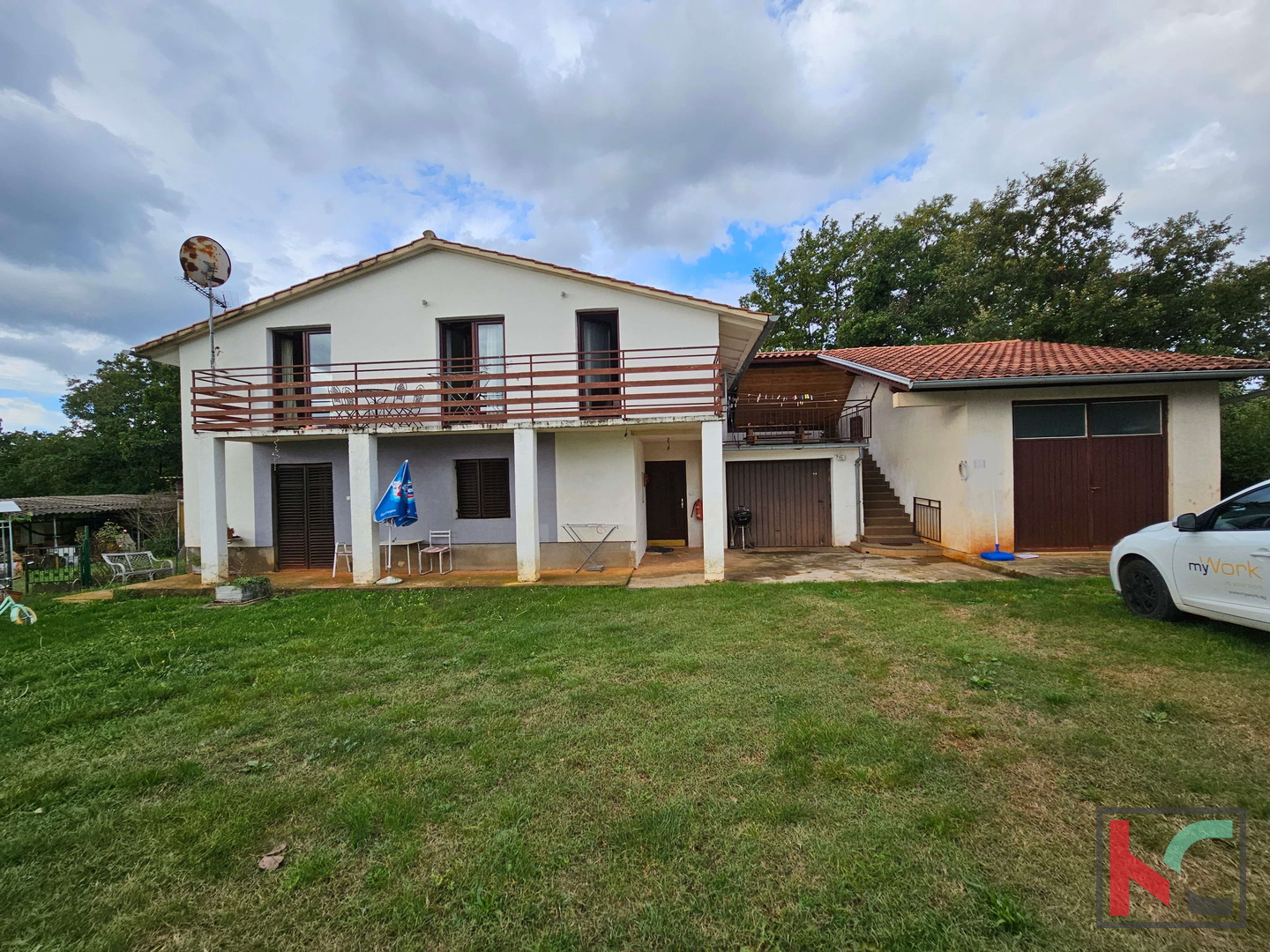 Zum Verkauf steht ein Haus mit Garage und großem Garten in der Nähe der Stadt Poreč, in schöner Lage. Das Haus mit einem Grundriss von 168 m2 besteht aus zwei Wohneinheiten, eine im Erdgeschoss und eine im ersten Stock, jeweils mit eigenem Eingang. Für Heizung und Kühlung sorgen Klimaanlagen und Festbrennstofföfen. Das Besondere an dieser Immobilie ist ein großer Garten mit einer Gesamtfläche von m2 mit verschiedenen Obstbäumen und mehreren Olivenbäumen. Die Immobilie ist renovierungsbedürftig und eignet sich dank ihrer guten Lage zum Wohnen oder als Investition zum Zwecke der touristischen Vermietung. Die Stadt Poreč und die gepflegten Strände sind ca. 10 Autominuten entfernt.