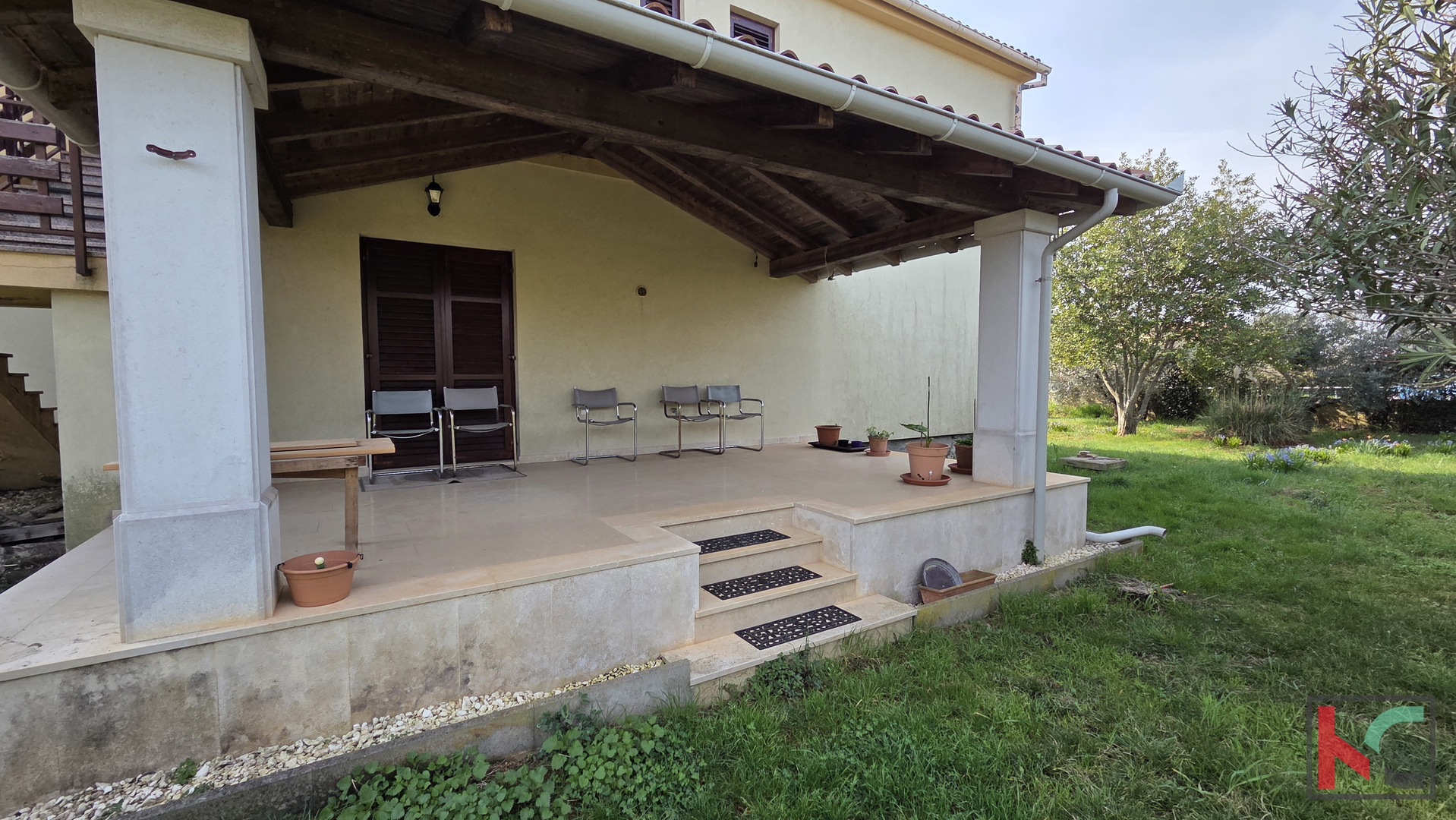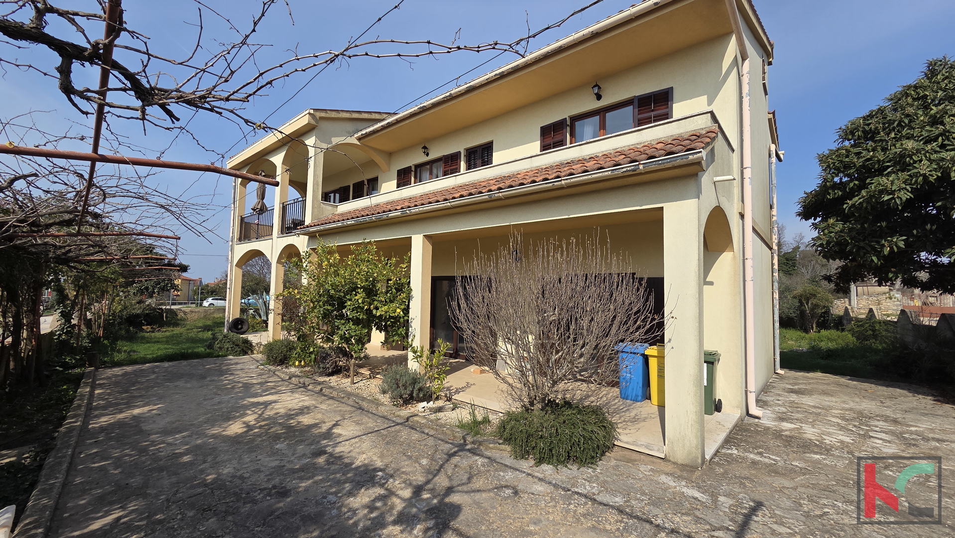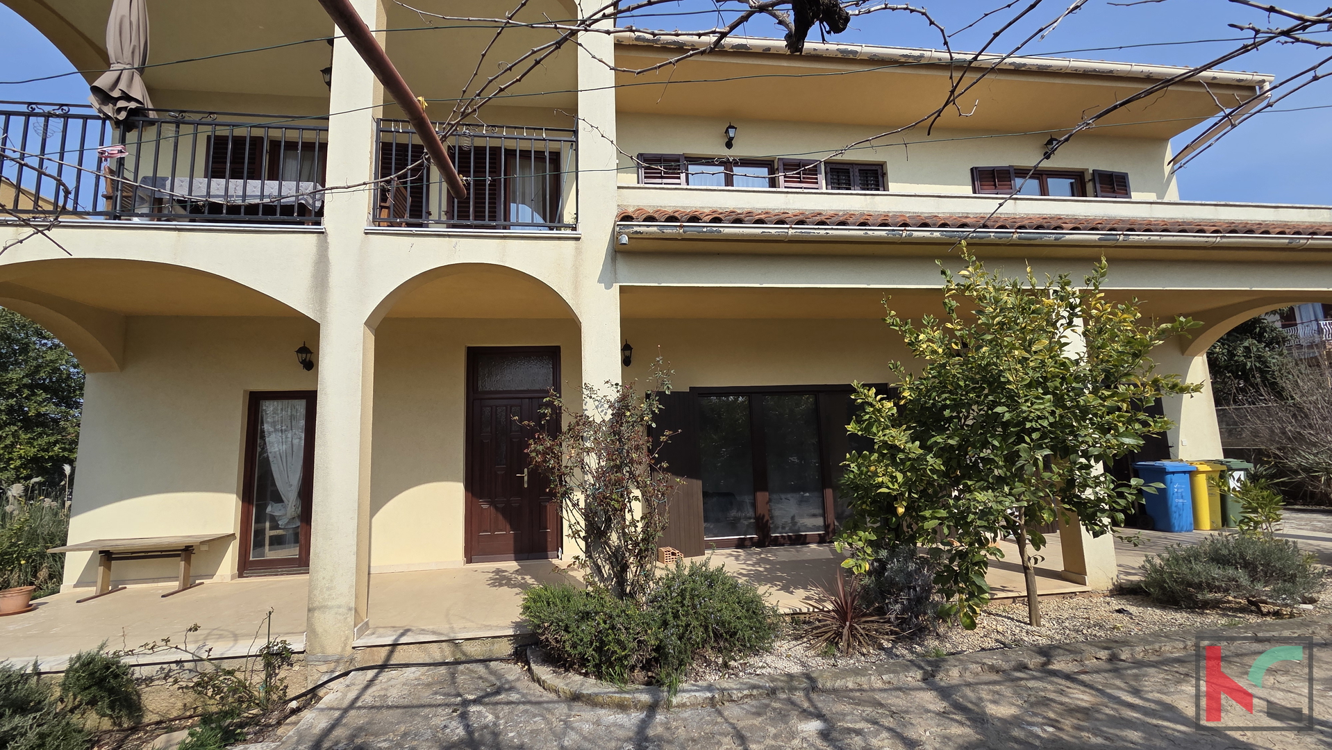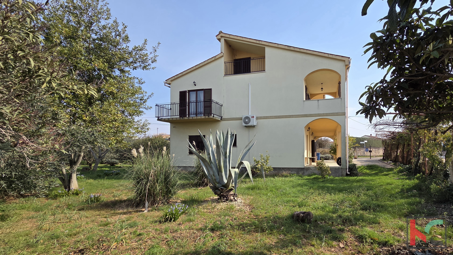 Nahe Pula in einem ruhigen Teil von Galižana, umgeben von Einfamilienhäusern und Grünflächen, befindet sich ein geräumiges freistehendes Haus mit einer Gesamt-Nettofläche von 421,51 m2 auf einem außergewöhnlich großen Grundstück von m2. Der großzügige Garten ist im mediterranen Stil gestaltet und wird von etwa 20 Olivenbäumen geschmückt, die eine angenehme Atmosphäre und Privatsphäre für den Aufenthalt im Freien schaffen. Das Haus erstreckt sich über drei Etagen – Erdgeschoss, erstes Obergeschoss und ausgebautes Dachgeschoss – und das Konzept ermöglicht die Nutzung als zwei separate Wohneinheiten mit der Möglichkeit, eine dritte zu gestalten. Erdgeschoss – 129,51 m2 Der Raum ist im Rohbauzustand und bietet dem zukünftigen Eigentümer die Möglichkeit, ihn nach eigenem Geschmack fertigzustellen. Vorgesehen ist ein moderner Grundriss mit Flur, großzügigem Open-Space-Wohnbereich, der Küche, Esszimmer und Wohnzimmer mit Zugang zur Terrasse vereint, sowie drei Schlafzimmern – eines davon mit Zugang zur hinteren Terrasse und zum Garten. Erstes Obergeschoss – 131,85 m2 Das Obergeschoss ist über eine Außentreppe erreichbar. Hier befindet sich eine gepflegte und sofort bezugsfertige Wohnung, die aus Flur, drei Schlafzimmern, von denen zwei jeweils über ein eigenes Badezimmer und Balkone verfügen, einem zusätzlichen Badezimmer sowie einem großzügigen Wohnbereich mit Küche, Esszimmer und Wohnzimmer in offener Gestaltung mit Zugang zu einer großen Terrasse besteht. Ausgebautes Dachgeschoss – 102,77 m2 Das Dachgeschoss ist in drei Räume unterteilt, von denen einer Zugang zu einer Loggia hat. Der Raum bietet hervorragendes Potenzial zur Gestaltung einer zusätzlichen Wohnung, eines Arbeitsbereichs oder einer Ferienwohnung zur Vermietung. Die Immobilie wird zusätzlich durch mehrere Terrassen und Balkone, einen Kamin, Klimaanlagen, Holzfenster sowie einen Weinkeller ergänzt, während auf dem Grundstück Platz für drei oder mehr Parkplätze vorhanden ist. Dank seiner Größe, der Aufteilung und des großen Grundstücks sowie der Mikro- und Makrolage (Nähe zu allen notwendigen Einrichtungen – Geschäfte, Cafés und Kirche, Pula und das Meer sind nur etwa 15 Minuten Fahrt entfernt) ist diese Immobilie ideal für ein ruhiges Familienleben, aber auch als Investition für touristische Vermietung geeignet.