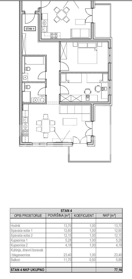HRAŠĆE- 16 stanova u NOVOGRADNJI - prizemlje, I i II kat - S4-77,16 m2