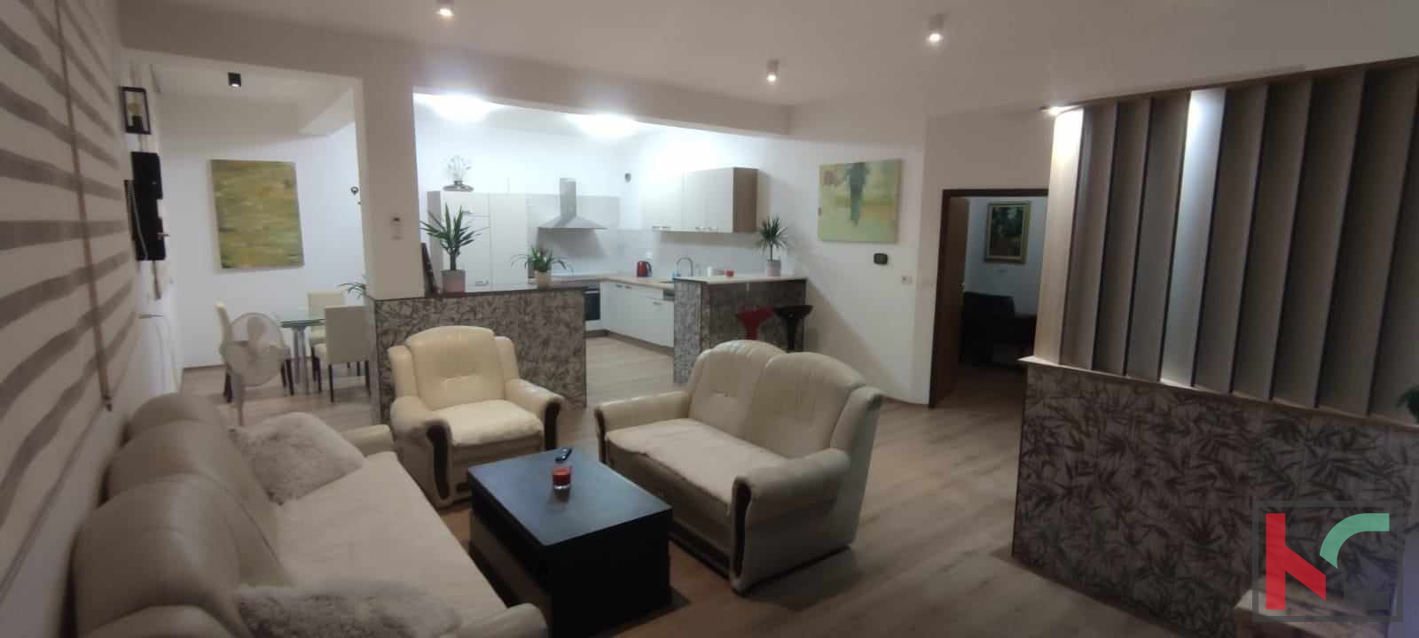 Zum Verkauf steht eine komplett renovierte Wohnung mit einer Gesamtwohnfläche von 100,20 m2 in toller Lage in der Nähe aller wichtigen Einrichtungen, nur 10 Gehminuten vom Stadtzentrum entfernt. Es befindet sich im Erdgeschoss eines neu erbauten Gebäudes mit 4 Wohnungen. Es besteht aus einem Eingang, einer Küche mit Esszimmer und einem geräumigen Wohnzimmer, einer Speisekammer, einem Abstellraum, zwei Schlafzimmern, einem Badezimmer und einer separaten Toilette. Die Außen- und Innenschreinerei wurde komplett verändert, neue Sanitärkeramik im Bad, Elektroheizung mit Klimageräten, die erste Phase der Zentralheizung abgeschlossen, neue Möbel und separate Wasser- und Stromzähler. Die Renovierung wurde durchgeführt. Da die Wohnung auch über einen Kamin verfügt, hat der neue Eigentümer die Möglichkeit mit Holz oder Pellets zu heizen. Die Wohnung hat auch einen eigenen Parkplatz. Das Anwesen befindet sich in einer ruhigen Nachbarschaft, alle notwendigen Einrichtungen sind in der Nähe, sodass die Funktion der Wohnung zur Vermietung oder für ein angenehmes und friedliches Familienleben genutzt werden kann.