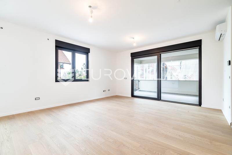 In one of the most attractive locations, Zagreb's Srebrnjak, a two-bedroom apartment with a covered terrace, garden, storage room and two garage parking spaces is for sale. It is located on the high ground floor of a new building under construction w