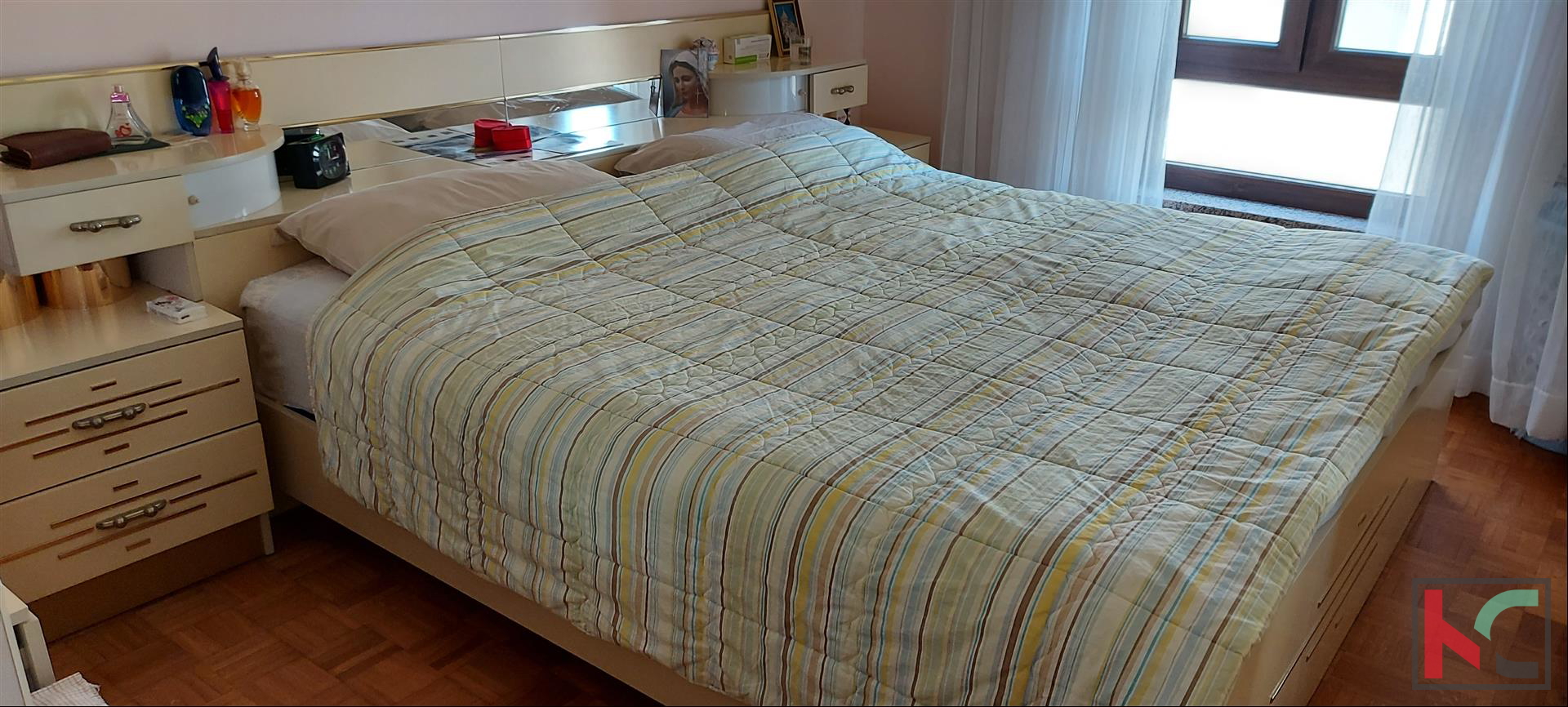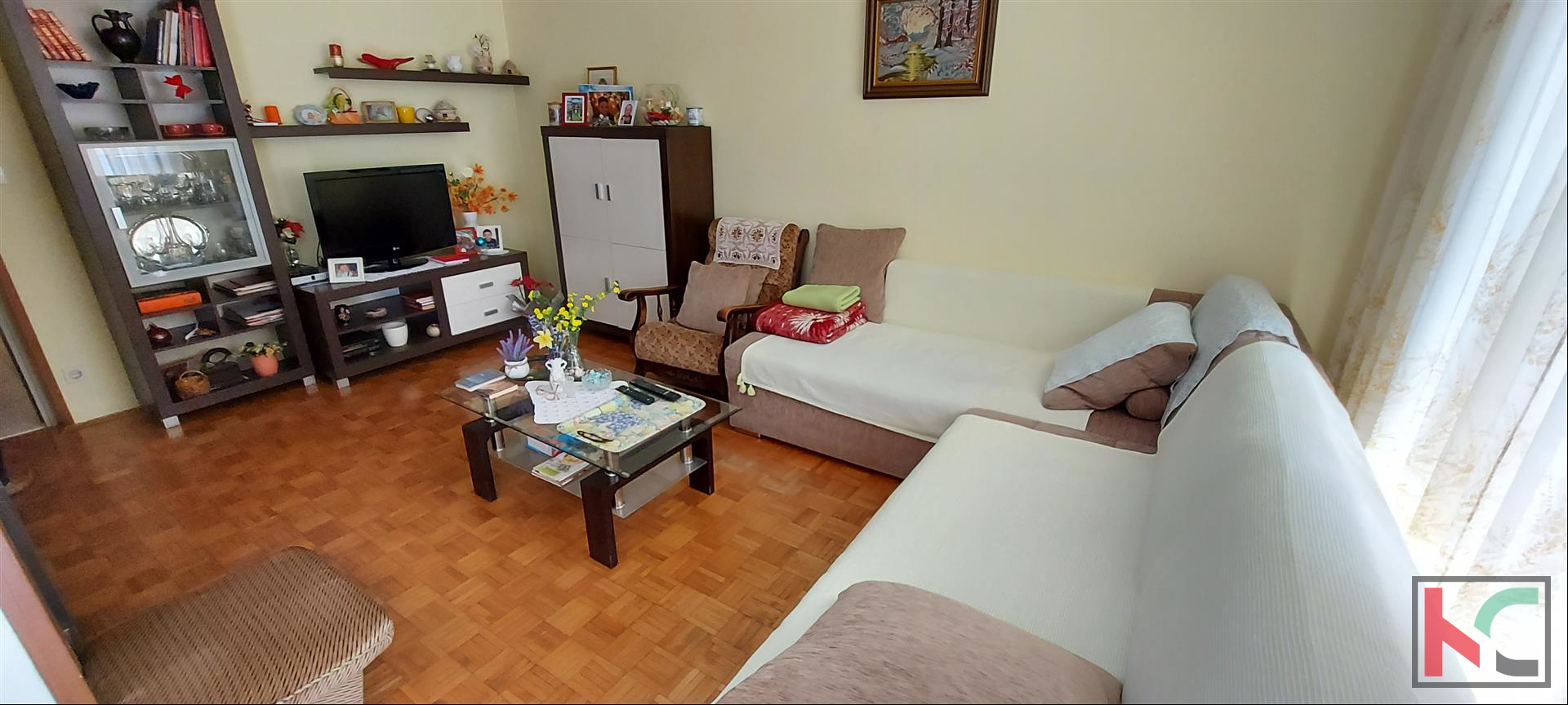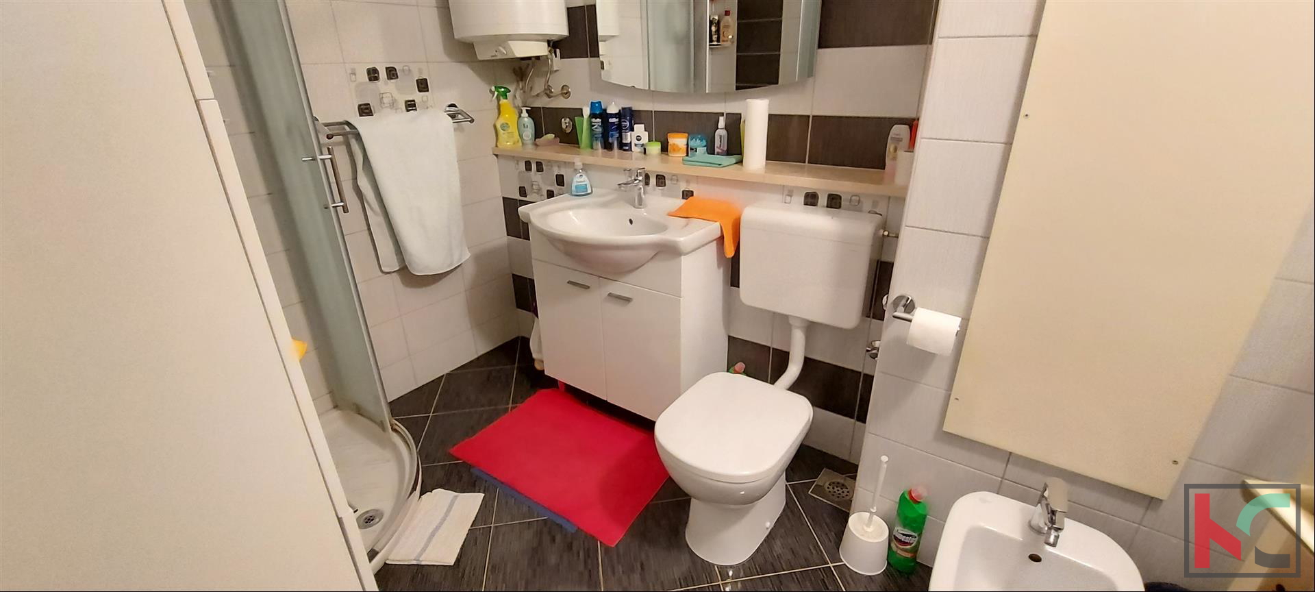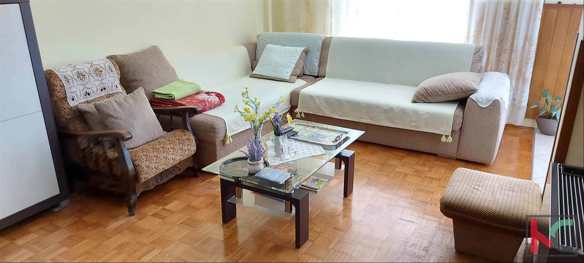 A comfortable apartment for sale on the ground floor of a quality residential building with its own garden of approximately 30m2. It consists of a front entrance, hallway, two bedrooms, bathroom, small toilet, spacious living room with terrace and kitchen with dining area. Equipped with PVC joinery, new air conditioning unit, natural gas and southern orientation. Parking space on the surface behind the building. Great location of the apartment only 3 minutes easy walk to the beach Valkane, a new shopping center and sports and recreation center with public swimming pools. Close to schools, market, bus station.
