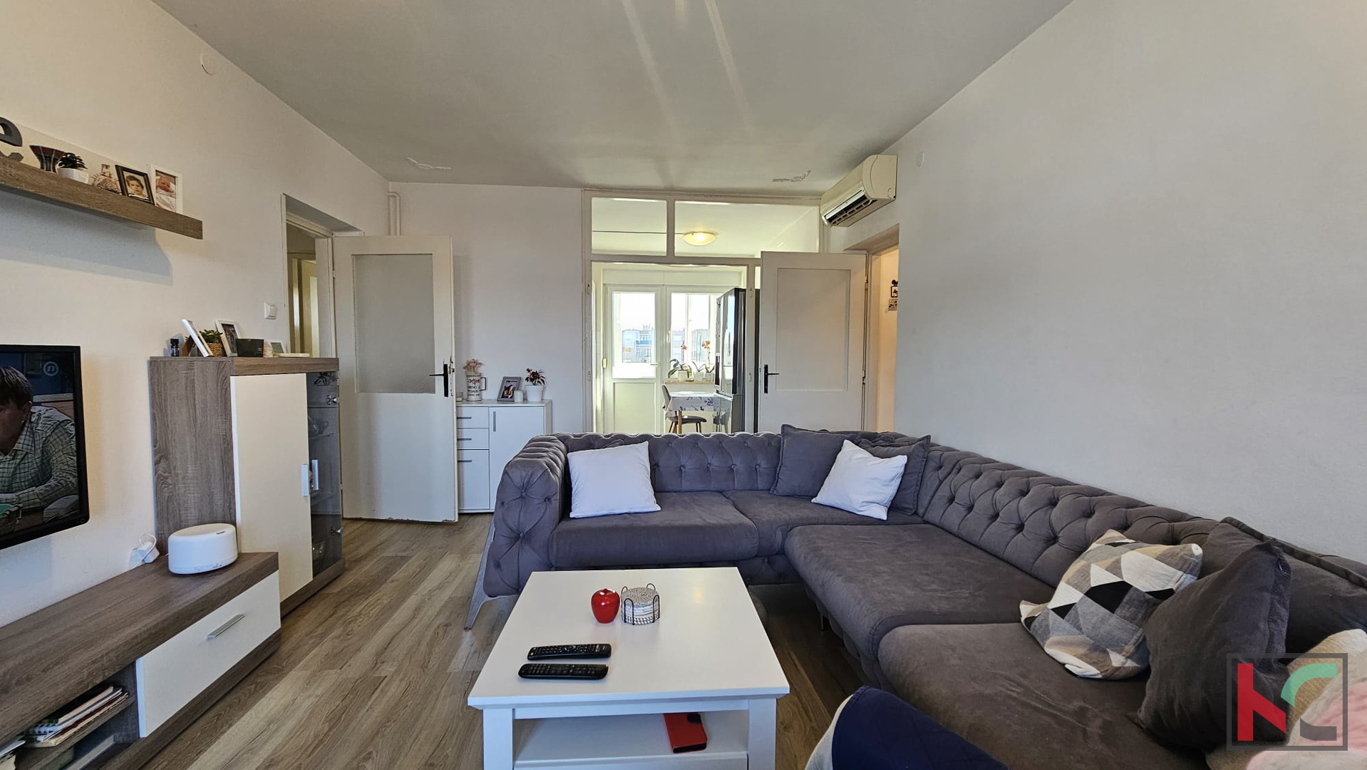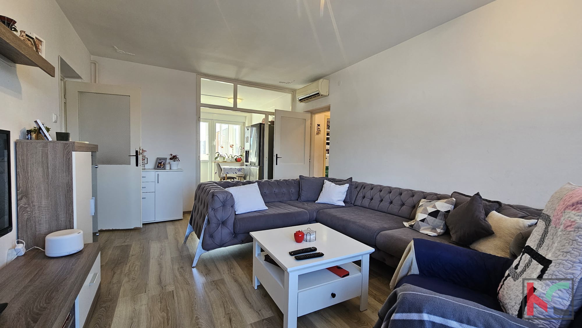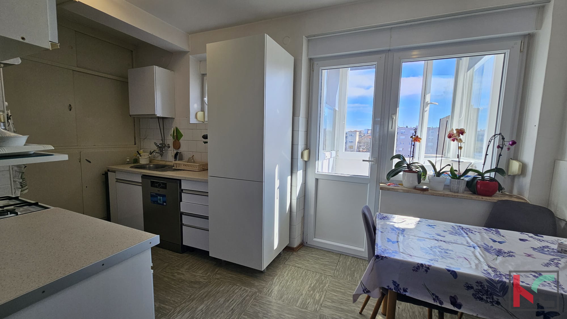 A spacious apartment with an area of m2 is for sale, located on the fourth floor of a residential building with a total of four floors, in a quiet part of Pula, the Šijana neighborhood. The apartment features a functional layout, making it exceptionally suitable for family living. It consists of: an entrance hallway, a guest toilet, a living room connected to the kitchen and dining area, a corridor, three bedrooms, and a bathroom. Thanks to its west and east orientation, the space is pleasantly illuminated by natural light throughout the day. The apartment offers a nice view that further contributes to the sense of comfort. A closed balcony and a loggia add special value to the property, providing additional space for relaxation or socializing. For a comfortable climate throughout the year, the apartment is equipped with air conditioning and also has a connection to the city gas supply. The apartment is move-in ready with great potential – offering the possibility of adaptation and decoration according to personal preferences. It is a perfect foundation for a family home for a larger family. The location in Šijana ensures a peaceful environment and good connectivity to all essential amenities such as shops, schools, and public transport, which further enhances the attractiveness of this property. For more information or to arrange a viewing, feel free to contact us.