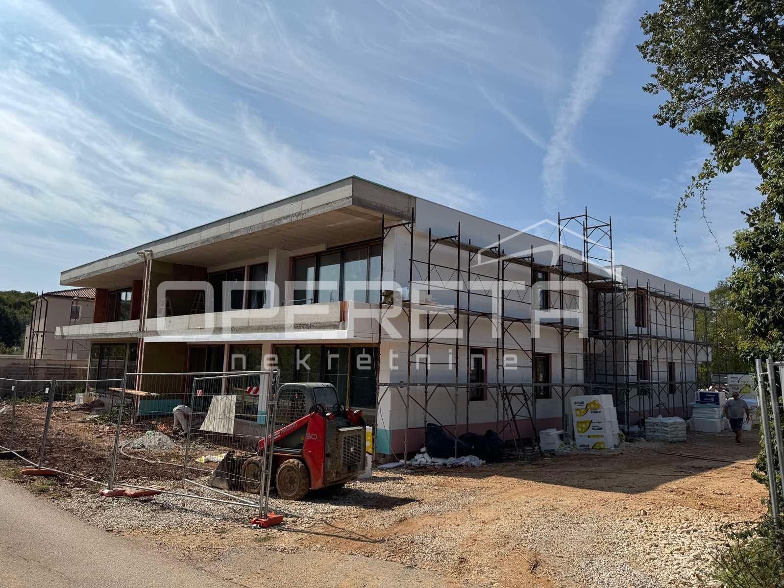 ISTRIA, ROVINJSKO SELO – First-floor apartment in a new building Located in a quiet settlement near Rovinj, in an ideal location just 9 km from the sea and the city center, is this modern apartment in a newly constructed building. Surrounded by natu re in a neat and peaceful neighborhood, it is the perfect choice for a relaxing lifestyle. The apartment consists of an entrance hallway leading to an open-plan living and dining area, creating a spacious and bright atmosphere. A standout feature is the separate kitchen with a pantry. The unit includes two bedrooms and a modern bathroom, while the living room opens onto a covered terrace—ideal for enjoying peace and fresh air. The quality of construction and equipment is of a high standard. Floors are finished with ceramic tiles, with warm wooden flooring in the bedrooms. Aluminum joinery with triple glazing ensures energy efficiency, while year-round comfort is guaranteed by underfloor heating in the kitchen and bathroom, along with air conditioning in the bedroom. The apartment includes two dedicated parking spaces in front of the building. This property represents an ideal opportunity for those seeking a high-quality, peaceful home close to all the amenities and beauties of Rovinj. The apartment is sold on a "turnkey" basis, unfurnished. Completion of works is scheduled for summer 2026. ... show all