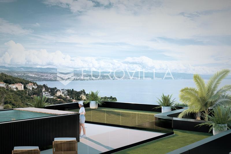 Opatija, Ičići, penthouse in an elite new development with a spacious terrace and swimmi