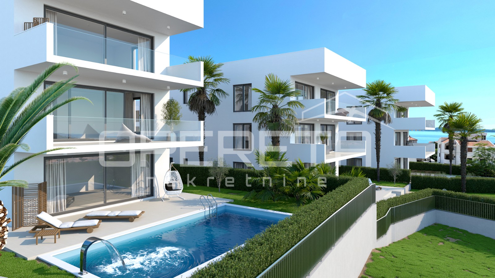 In Okrug Gornji, on the island of Čiovo, a complex of several urban villas is under construction. Each villa has three floors.