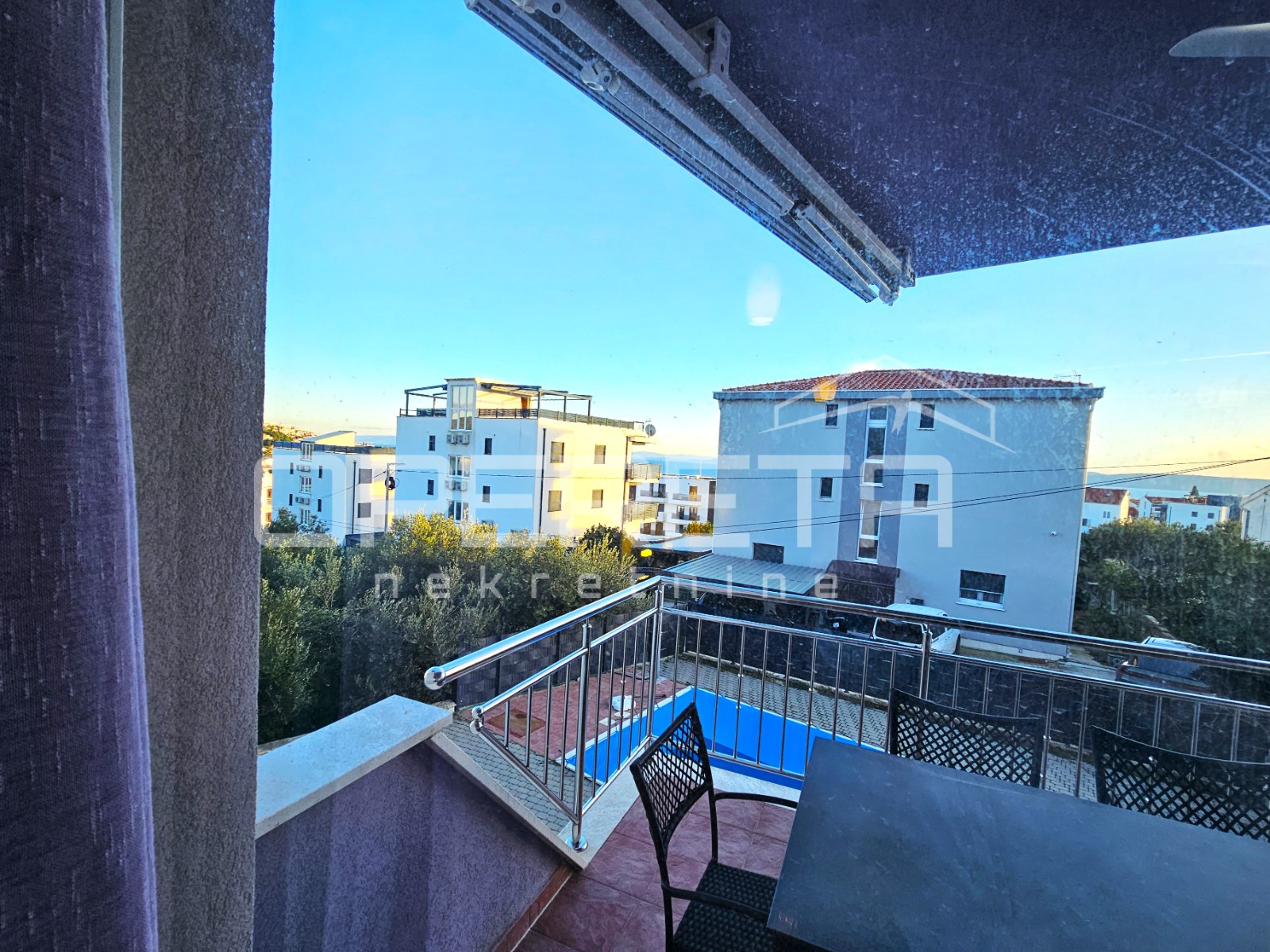 A covered balcony of 15 m² adds special value and is perfect for morning coffee, dining, or evening relaxation. Although the view is not completely open, the apartment offers a pleasant sea view.