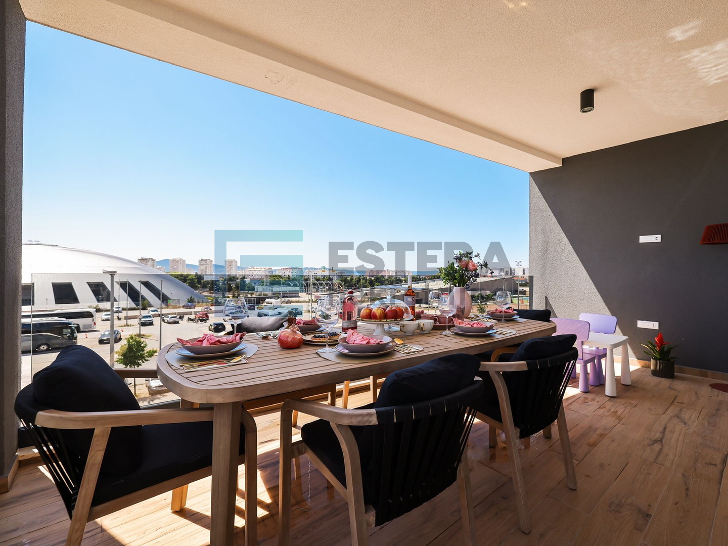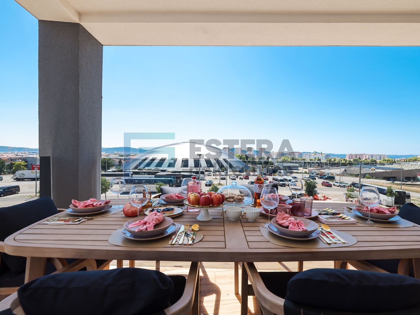 n an attractive part of Zadar - Višnjik. Apartment Features: - Living room with kitchen and access to a covered terrace overlooking the sports hall - Three bedrooms, one with its own bathroom and terrace - Two bathrooms - Entrance hall - Net usable area of the apartment: m2 - Three garage parking spaces - Storage room in the basement Additional Possibilities: - Rooftop terrace of 108 m2 available for purchase; total price with all accessories is €499,000 (including rooftop terrace) Equipment and Features: - Underfloor heating and air conditioning - Electric shutters - Security doors - Video intercom and alarm system - Fully furnished kitchen and bathrooms Location and Infrastructure: Višnjik is one of the most well-maintained and desirable areas in Zadar, known for excellent infrastructure. Nearby are schools, kindergartens, sports centers, and shops, all accessible on foot. The city center and promenade are nearby, with excellent traffic connections. The bus station (lines 3 and 6) is 500 meters from the apartment. For additional information and viewing arrangements, contact: Suzana Rušov Phone: + (WhatsApp/Viber available)