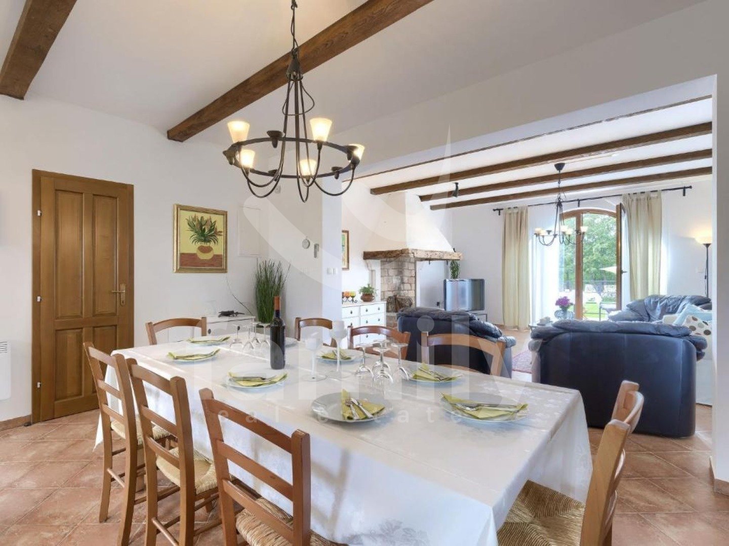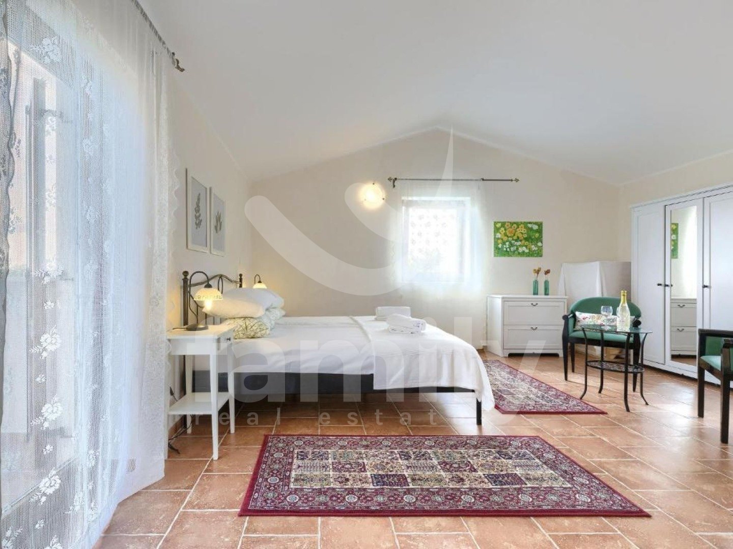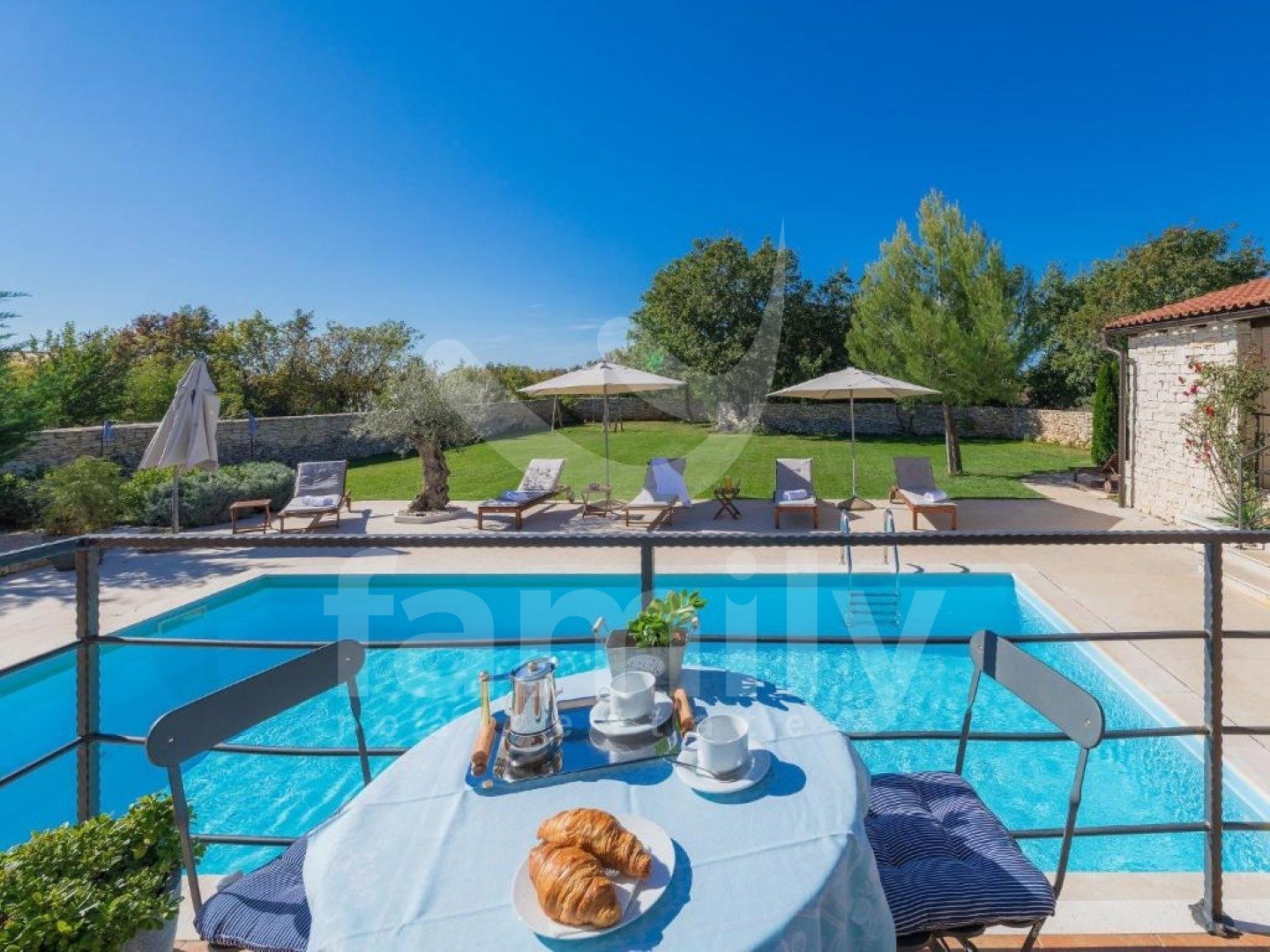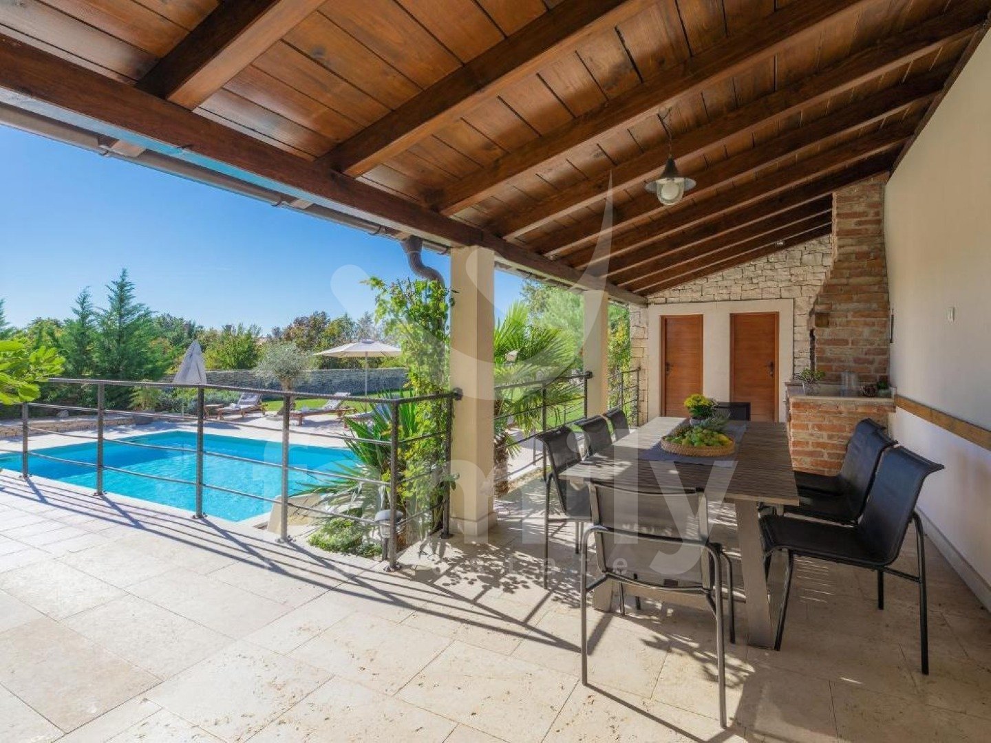 eptionally quiet location, which offers complete privacy and harmonious coexistence with nature on a plot of 1,527 m². The property has a total living area of 220 m² and is spread over two floors and exudes warmth, elegance and a carefully designed layout. On the ground floor there is a spacious living room with a fireplace, connected to the dining room and kitchen in an open space concept, from which you can exit to a covered terrace with a summer kitchen, a built-in barbecue and an outdoor dining area - the perfect place to enjoy the view of the pool and greenery. On the same floor there is also one bedroom with its own bathroom and access to the terrace. On the first floor there are three spacious bedrooms, each with its own bathroom and terrace, which offer a captivating panoramic view of nature and the sea. All rooms are air-conditioned, ensuring maximum comfort throughout the year, and the floors throughout the building are covered with high-quality ceramics. A special value for this property is given by the carefully landscaped garden with a 24 m² swimming pool, a sunbathing area and a landscaped beach, as well as rich horticulture with automatic irrigation. The property is completely fenced, mostly with indigenous dry stone walls, which further emphasizes authenticity and privacy. There is also a spacious parking lot and a landscaped children's playground. Buying a stone house on a large plot of land in Svetvinčenat represents a combination of authentic Istrian charm and a modern way of life. Traditional stone construction provides special warmth, durability and timeless aesthetics, while the spacious plot ensures peace, privacy and numerous design options - from a swimming pool and garden to additional amenities for enjoyment. This location offers the perfect balance between nature and accessibility - you are surrounded by greenery and silence, and at the same time a short distance from the sea and larger cities. This is precisely why such properties are highly sought after both for personal vacations and as an investment in tourist rentals. A large garden further increases the value of the property, providing the freedom and comfort that is increasingly sought after today – whether for family life, an escape from the city crowds or a luxurious vacation in your own quiet corner of Istria. FOR ALL OTHER INFORMATION CALL: + Danijela Milotić Assistant in mediation