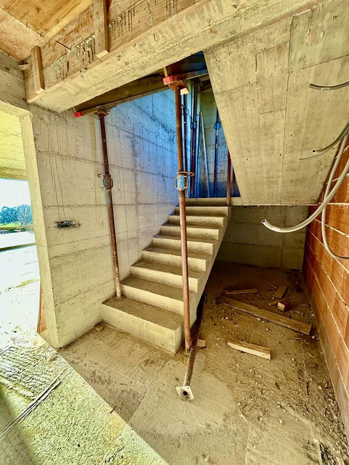 Also, via the internal staircase, we ascend to the second floor, which consists of a master bedroom of 33 m2, a bathroom, and a loggia of 15 m2.