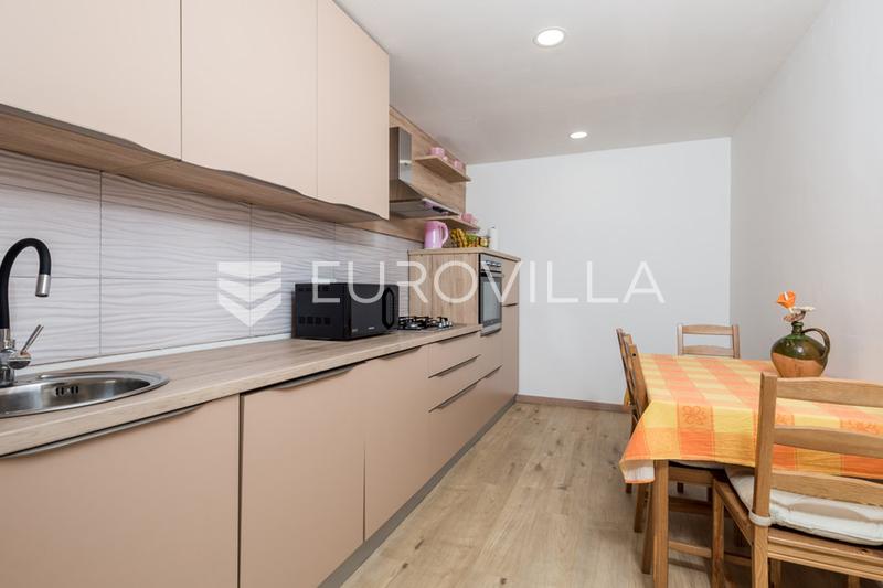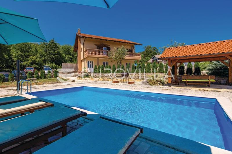 -bedroom apartment with a living room, kitchen, bathroom, and a spacious bedroom. In front of the apartment, there is a covered terrace and a garden enclosed by cypress floor (north side), a smaller one-bedroom apartment in roh-bau stage, ideal for finishing according to your own floor, a comfortable three-bedroom apartment with exterior stairs, hallway, two bedrooms, bathroom, WC, storage, kitchen, dining area, and living room with access to a spacious balcony with beautiful views of the surrounding house is equipped with gas heating, PVC joinery, and high-quality flooring, ensuring comfortable living throughout the outdoor area is a true mini paradise for family and recreation, featuring a 32 m² swimming pool with sun deck, gazebo with barbecue, children’s playground, and three parking at the end of a cul-de-sac and surrounded by forest, the property offers peace, quiet, and privacy, while still being just a few minutes’ drive from all essential property is currently rented five months a year as a holiday home, making it an excellent investment house is ideal for investors or anyone seeking a peaceful lifestyle in harmony with more information or to arrange a viewing, please feel free to contact us.... Više na , ID: