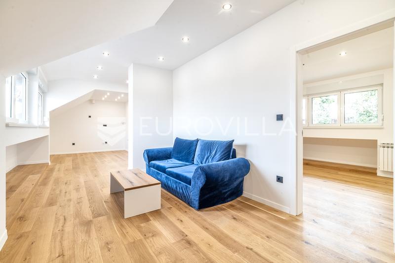 Trosoban stan u zagrebačkom naselju Maksimir, smješten u potkrovlju manje i uredne stambene zgrade, potpuno adaptiran 2026. godine. Zatvorena površina stana iznosi 52,70 m², a ukupna neto korisna površina s pripadajućim spremištem iznosi 53,90 m².Sta