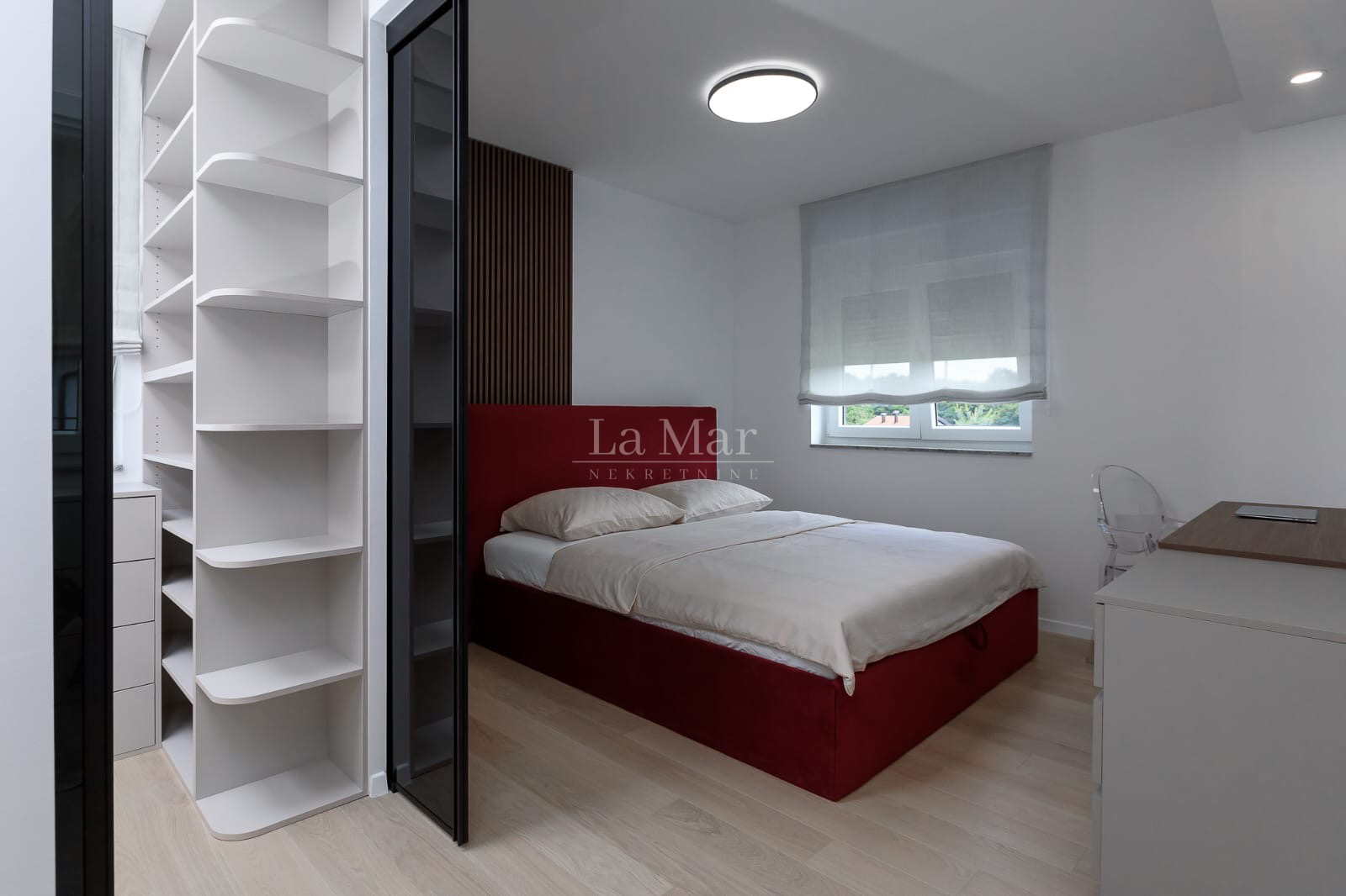 Stan je funkcionalno raspoređen kako bi zadovoljio potrebe obitelji i modernog načina života. Na raspolaganju su dvije kupaonice, dječja soba, dodatna spavaća soba te izdvojena master spavaća zona s vlastitom kupaonicom i garderobom. Po potrebi, prostor se može prilagoditi i organizirati u tri odvojene spavaće sobe.