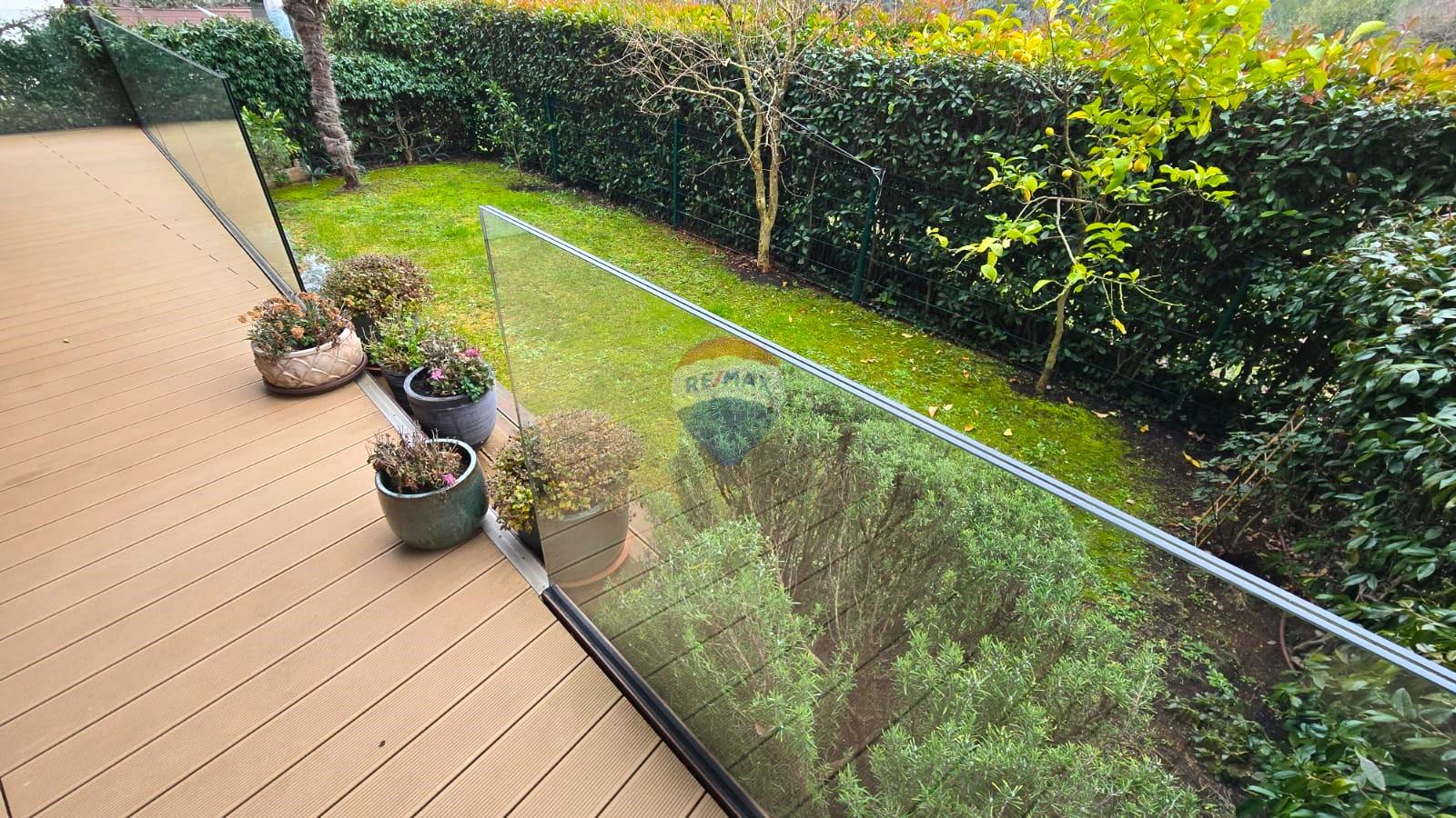 se ulazi u prostrani dnevni boravak s elegantnim kaminom, koji se nastavlja na kuhinju s blagovaonicom. Duž cijelog dnevnog boravka i kuhinje proteže se terasa površine 18 m², s koje se izlazi u vlastiti vrt površine 43 m².