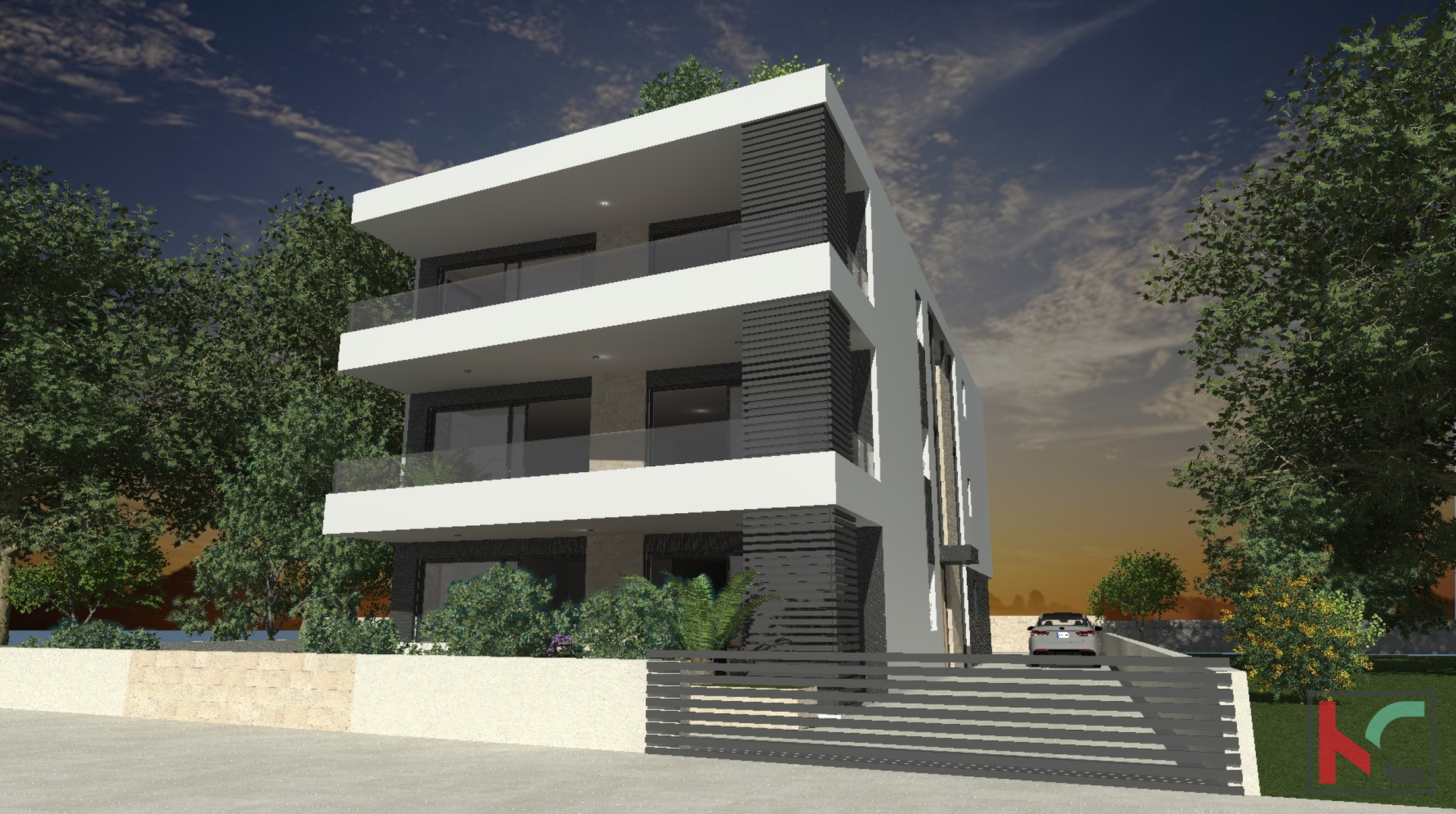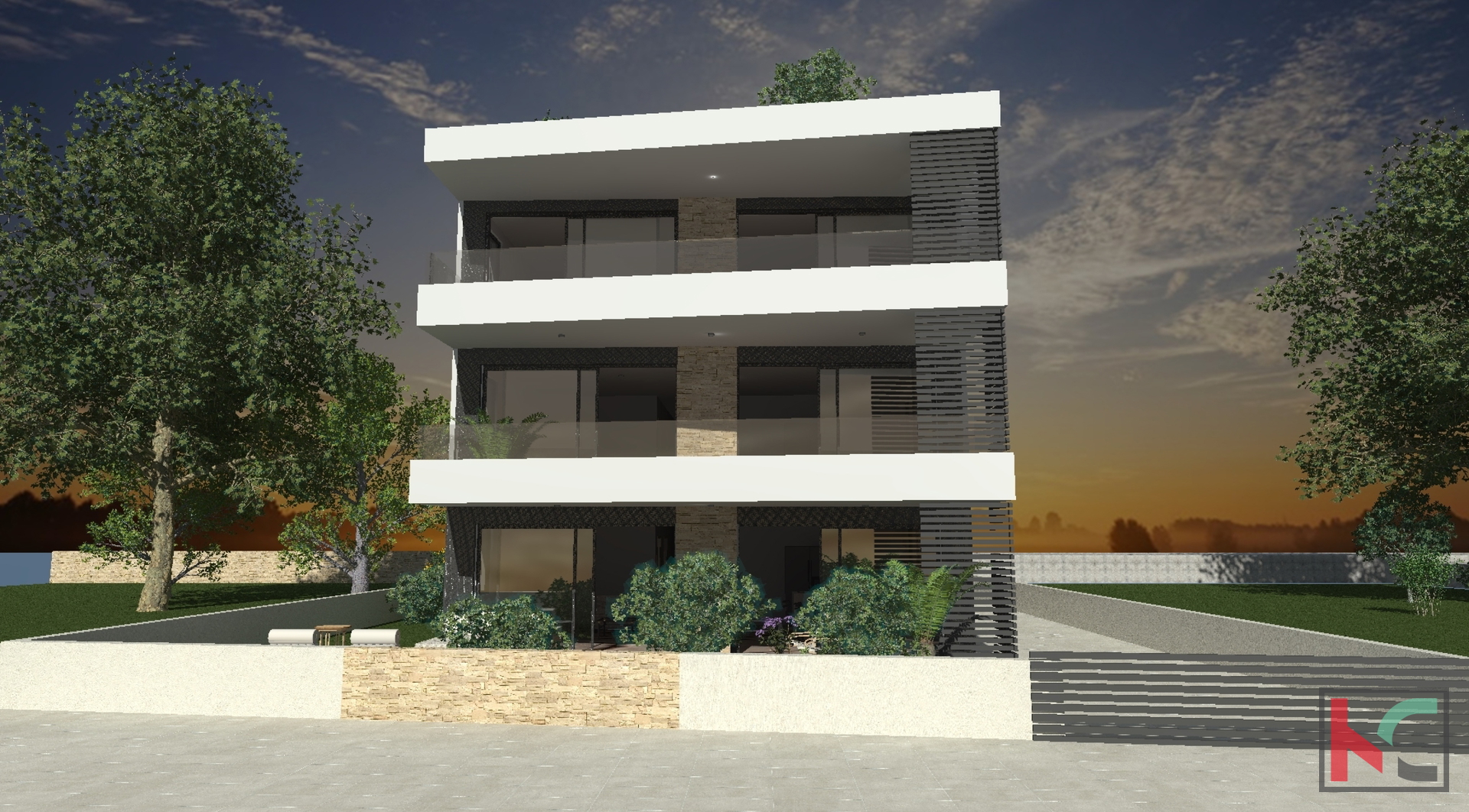 Na popularnoj lokaciji smještenoj u neposrednoj blizini centra grada prodajemo ovaj jedinstven stan u prizemlju sa vlastitim vrtom površine 126m2. Ova kvalitetna nekretnina luksuznijeg tipa čija površina iznosi 148,73m2, nuditi će budućim vlasnicima izuzetan mir i udobnost a nalaziti će se u zgradi visokokvalitetne gradnje sa samo tri stambene jedinice. Iskoristivost stambenog prostora je savršena kao i tlocrtni raspored prostorija koji podrazumijeva ulazno predsoblje, komforan dnevni boravak i kuhinju sa blagovaonicom površine 55m2 koja će imati izlaz na terasu 25m2 sa nastavkom na prostran uređeni vrt od 126m2, spavaći dio je odvojen od dnevnog dijela te se tu nalaze velike dvije sobe površine 17m2 i 19m2, svaka sa svojom en suite kupaonicom površine 6,5m2 i malim balkonom, u sklopu stana nalazi se laundry prostorija i ostava. Na uređenoj okućnici ispred objekta nalaziti će se 2 parkirna mjesta u vlasništvu stana. Ova jedinstvena nekretnina osmišljena je u svakom detalju te prilikom gradnje korišteni su visokokvalitetni materijali, stoga nudi višestruke prednosti za buduće vlasnike koji će moći osim kvalitetnog boravaka u vlastite svrhe koristiti nekretninu i u poslovne svrhe luksuznijeg tipa turističkog iznajmljivanja.