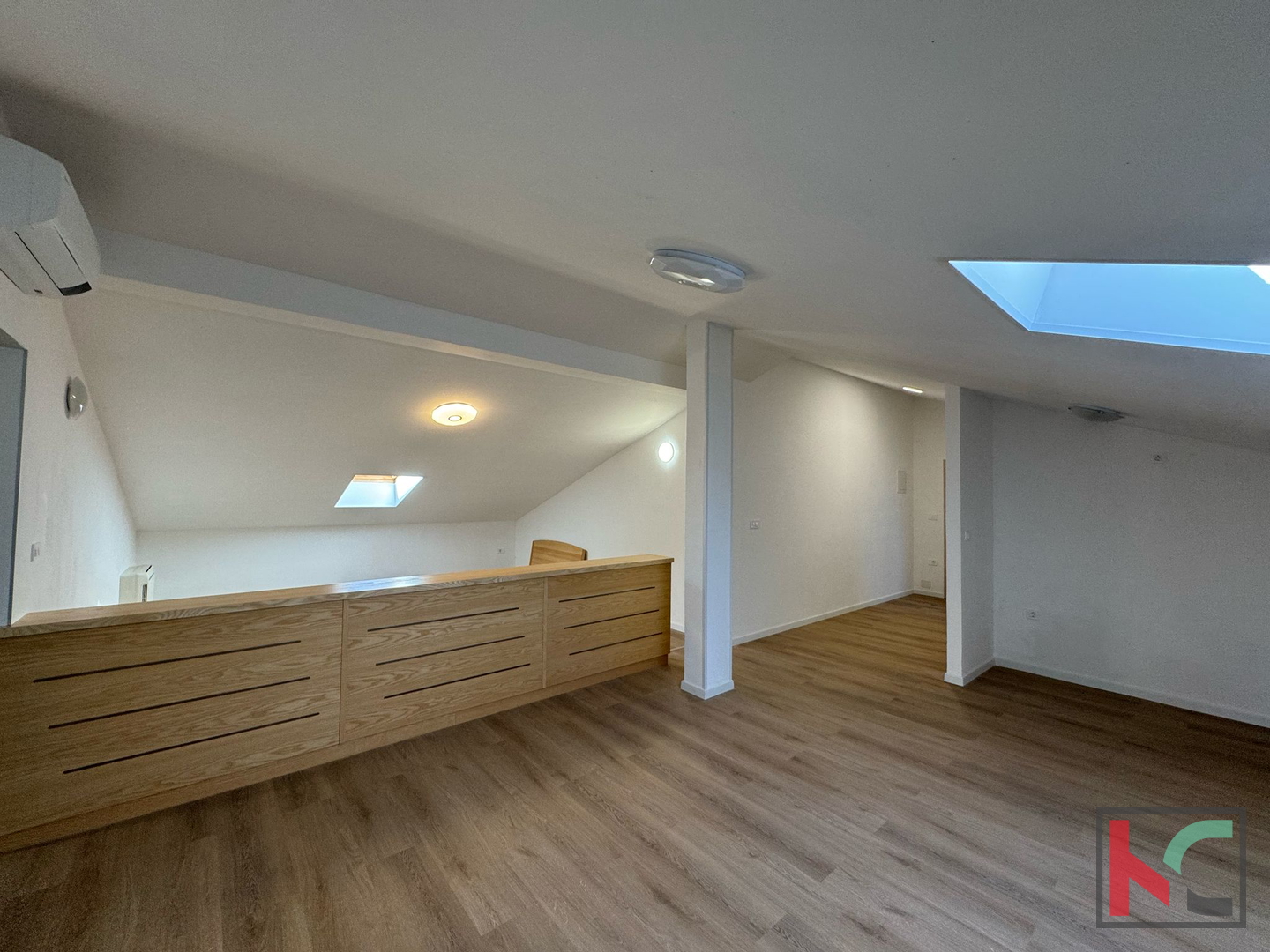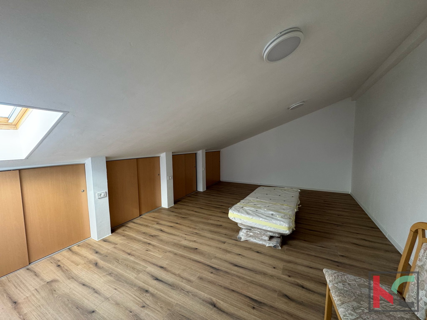 Prodajemo, u jednom od najpoželjnijih gradova u Istri, prostrani trosobni stan u potkrovlju zgrade novije gradnje. Tlocrtne površne 116m2 stan se sastoji od ulaznog hodnika, dvije kupaonice, open space prostora sa kuhinjom, blagovaonicom i dnevnim boravkom , te dvije spavaće sobe. Ovoj nekretnini pripadaju i dodatne prostorije za ostavu koje se nalaze unutar stana, no nisu uključene u kvadraturu, ukupne površine 48,7m2. Regulacija temperature u stanu omogućena je klima uređajima, dok krovni prozori omogućuju ispunjenost prostora prirodnom svjetlošću. U vlasništvu stana je i parkirno mjesto u garaži te na korištenje je zajednički prostor sa roštiljem. Zahvaljujući lokacijskoj poziciji, ovaj stan predstavlja spoj udobnosti i praktičnosti, što ga čini idealnom investicijom za ugodan obiteljski život ili u svrhu turističkog iznajmljivanja.