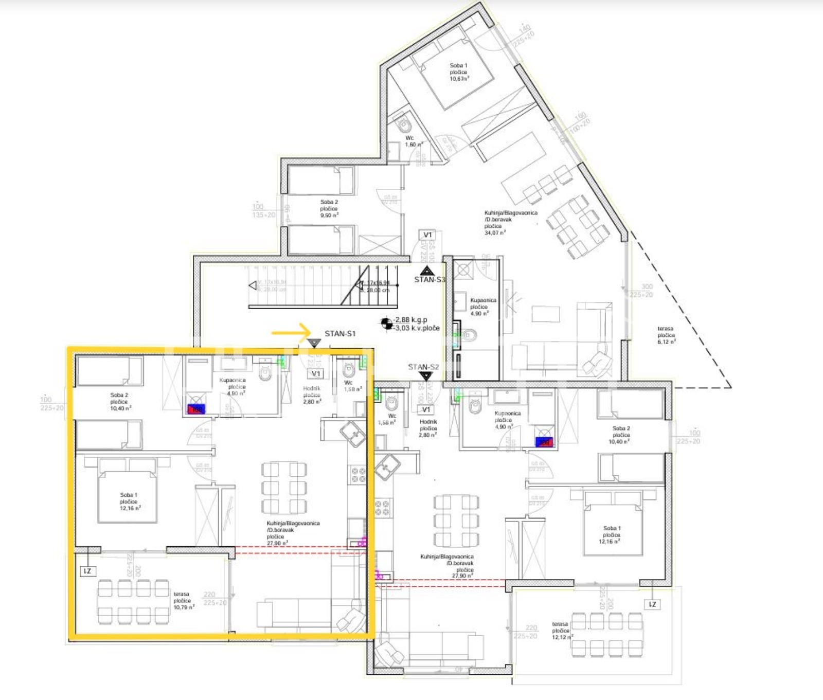 - Površina terase: 10,79 m2