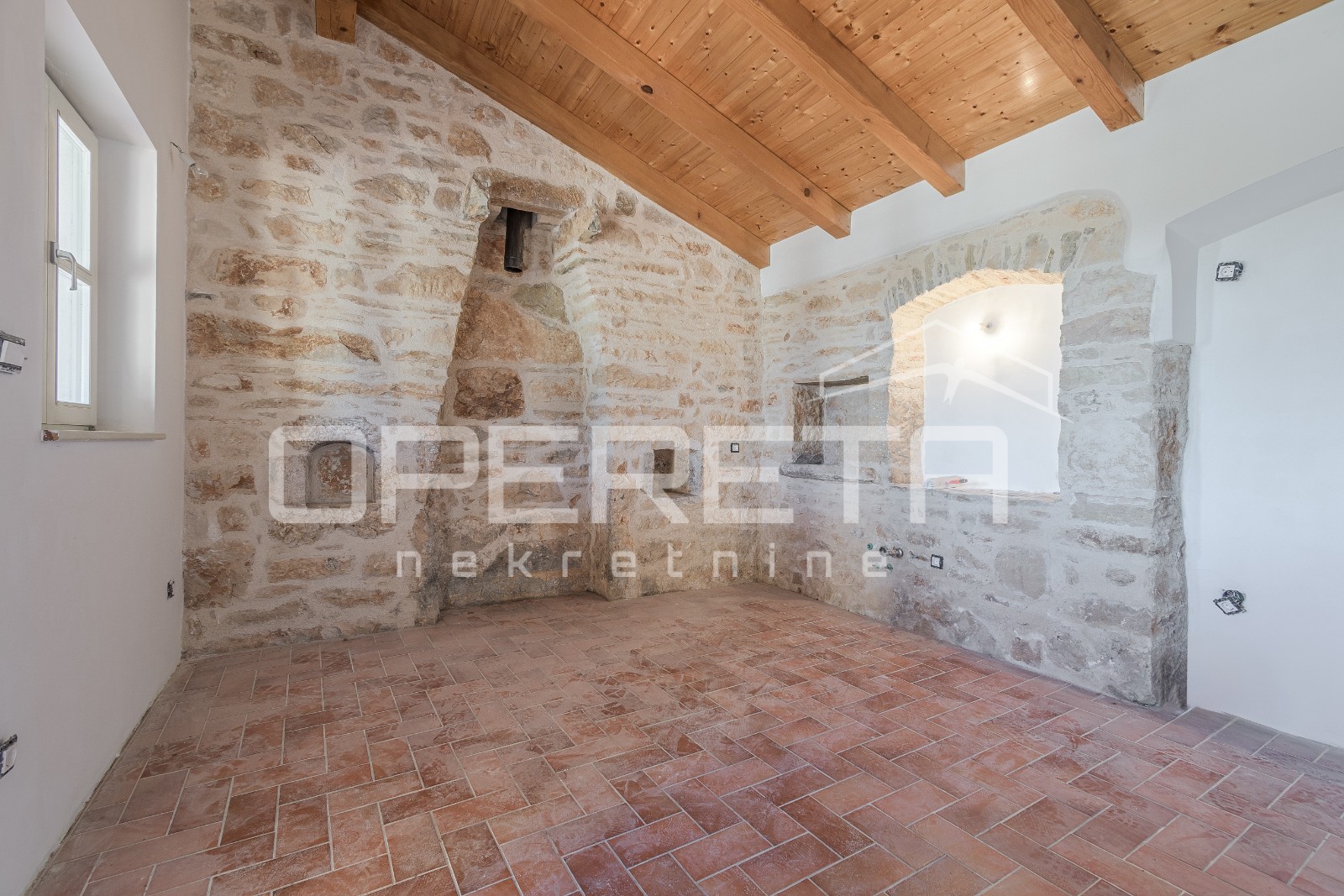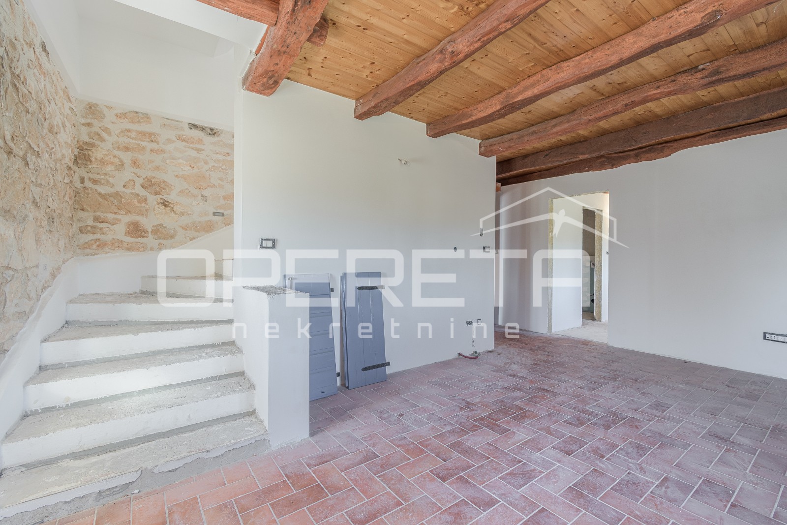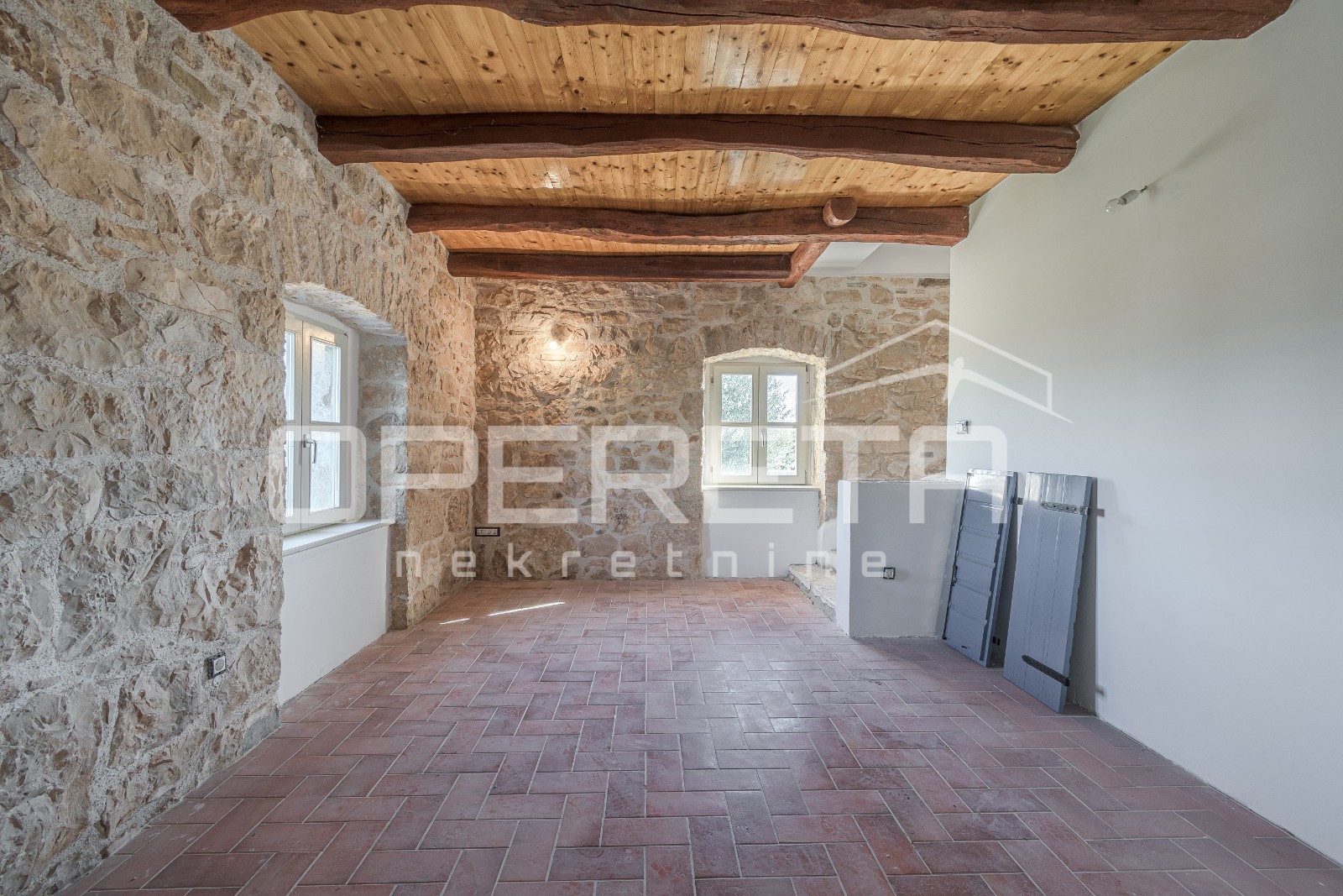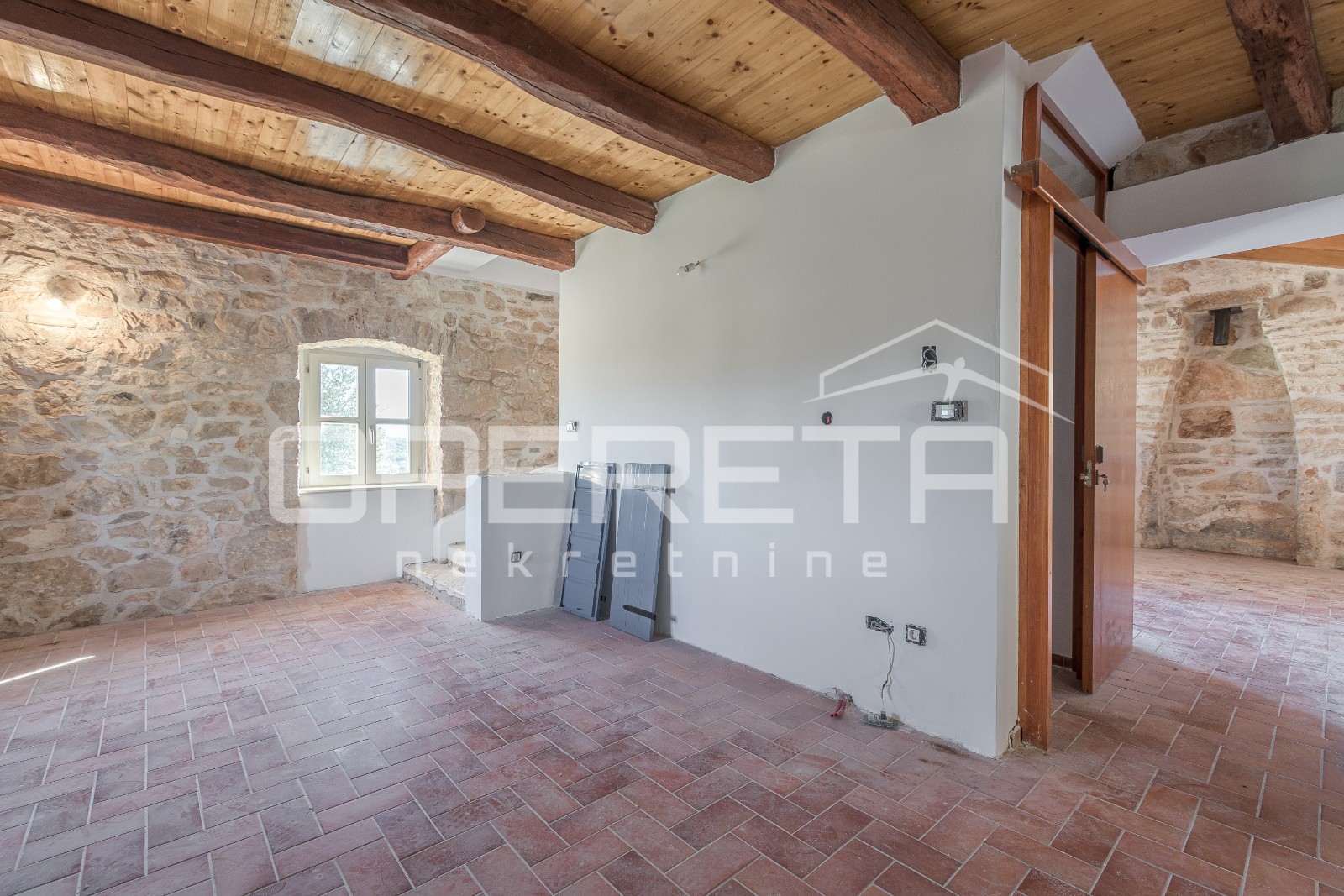 Kuća je kvalitetno renovirana u tradicionalnom istarskom stilu, s kamenim detaljima i autentičnim šarmom. U podrumu se nalazi velika konoba s prostorom za vinski podrum, što dodatno povećava vrijednost i potencijal ove nekretnine.