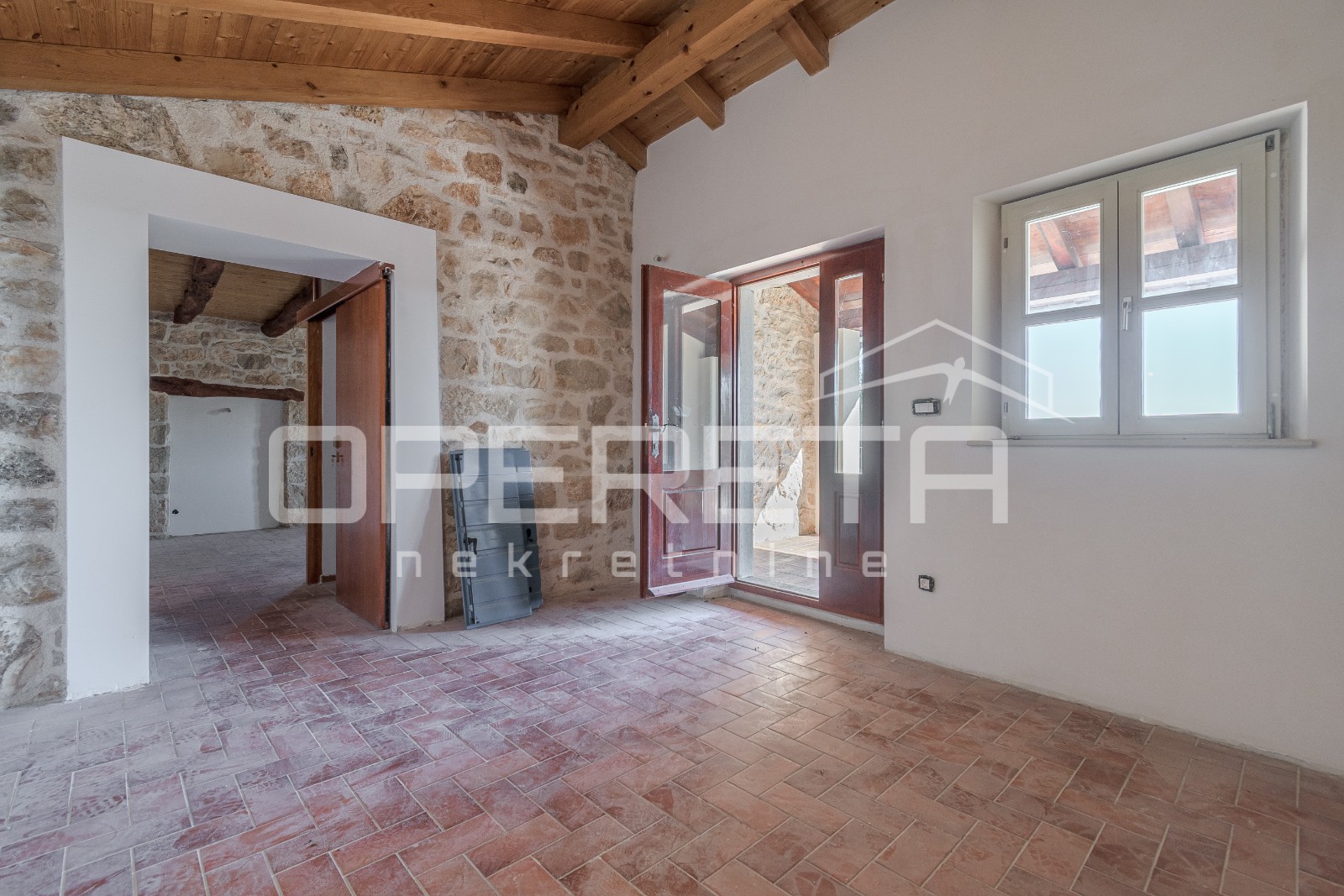 Iz naše ponude izdvajamo prostranu kuću ukupne stambene površine od 300 m², smještenu na uzvisini u mirnom dijelu okolice Vižinade, s prekrasnim otvorenim pogledom na istar