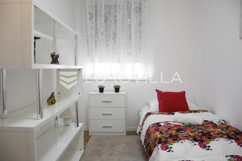 Špansko, trosoban stana površine 56 m2 na petom katu novoizgrađene stambene zgrade s se od ulaznog hodnika s ugradbenim ormarom, kuhinje, blagovaonice, dnevnog boravka, dvije spavaće sobe i je opremljen s klima uređajem, perilicom rublja i posuđa,