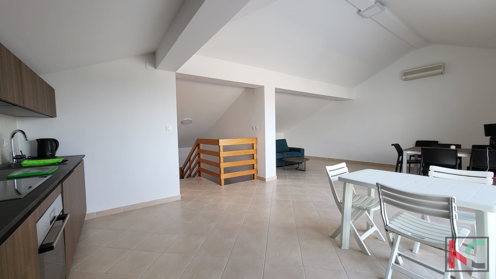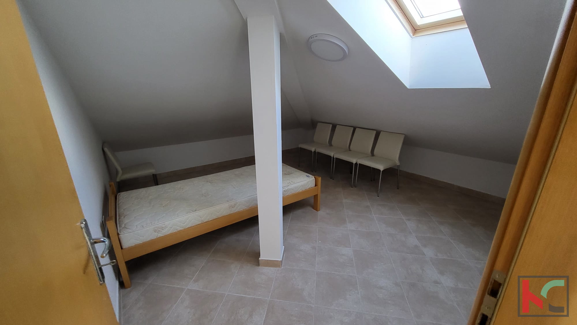 Prodajemo na mirnoj lokaciji naselja Volme nedaleko mora, marine te samog Grada Pule, vrlo zanimljiv stan funkcionalnog tlocrtnog rasporeda. Stan čija ukupna površina iznosi 115,45m2 smješten je u visoko kvalitetnoj stambenoj jedinici na dvije etaže. Iznimno povoljnog tlocrtnog rasporeda, a čine ga na prvom katu dnevni boravak sa kuhinjom i izlazom na prostranu terasu, spavaća soba, te kupaonica dok unutarnjim stepeništem se dolazi na mansardu, gdje se nalaze 2 spavaće sobe, krovna terasa i kupaonica. Kompletno namješten, sa zajedničkim korištenjem bazena, svega 250m od mora i uređenih plaža, sa bogatom gastronomskom ponudom u blizini, čini ovu nekretninu iznimno atraktivnu kao turističku investiciju.
