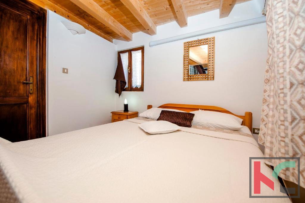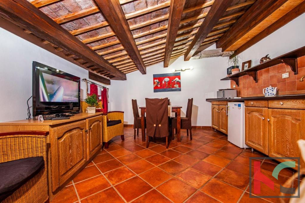 Prodajemo stan u samom srcu grada Rovinja, udaljenu svega jednu ulicu od glavne gradske šetnice Carrere, koji se nalazi u kamenoj kući potpuno obnovljenoj . godine. Stan je u prizemlju, ukupne površine 39,95m2, te se sastoji od "open space" prostora u kojem se nalazi kuhinja, blagovaonica i dnevni boravak te odvojena spavaća soba i kupaonica. Stanu pripada i dvorište od 2,85m2 na kojem se nalazi mala vrtna garnitura. Kuća je potpuno renovirana sa betonskim gredama, zadržan je autohtoni kameni i drveni stil. Stan se prodaje kompletno namješten kao zasebna jedinica ili zajedno sa još dva stana u istoj zgradi. Ova nekretnina je odlična prilika za nekoga tko se želi baviti turizmom obzirom na uhodan posao i siguran povrat investicije te lokacije kuće.