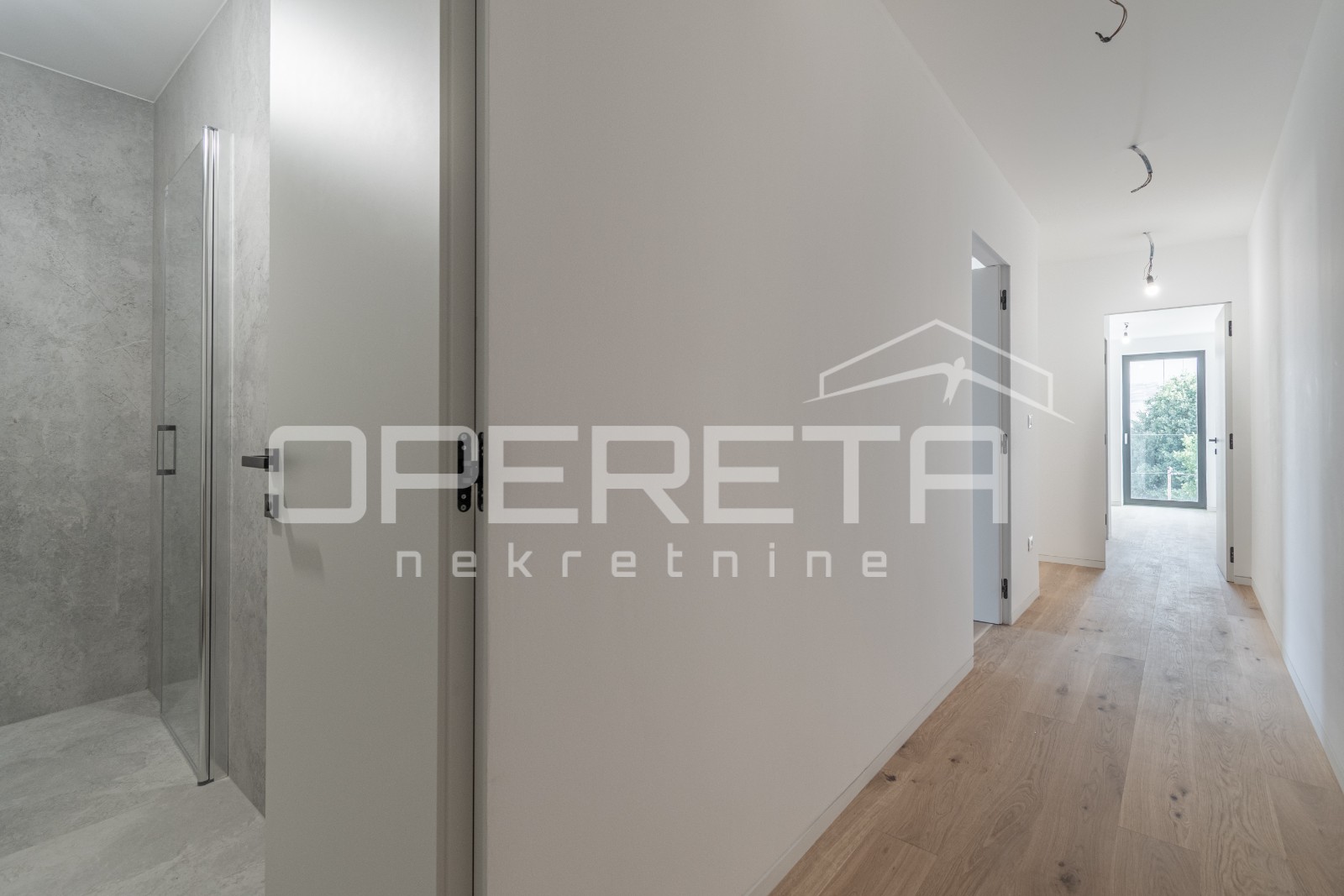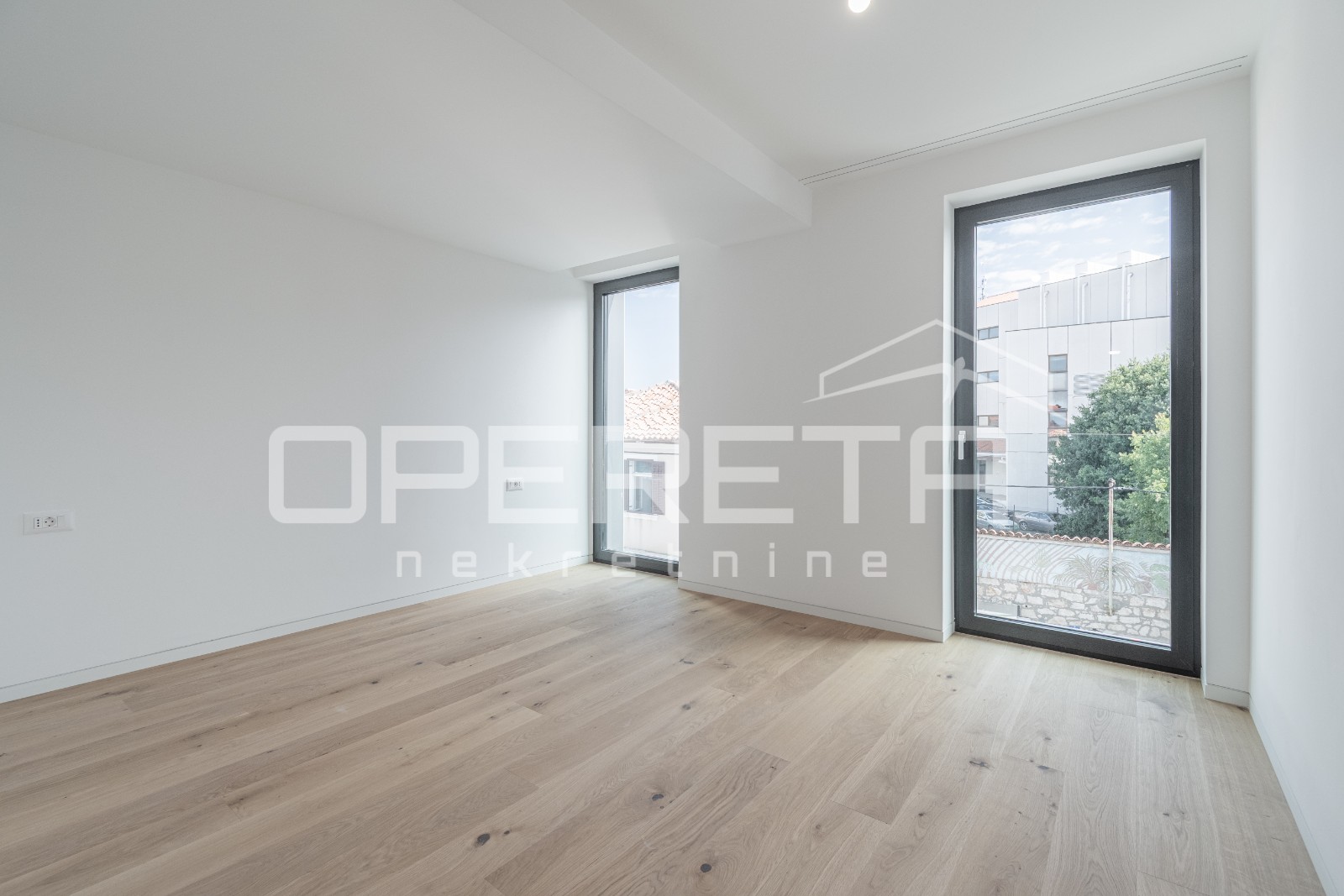 Podne obloge uključuju keramiku velikog formata i visokokvalitetni parket, dok je vanjska stolarija izrađena od aluminija (Wicona Wicslide 160) s troslojnim staklom, UV zaštitom i plinskim punjenjem, što osigurava vrhunsku izolaciju i dugotrajnost.