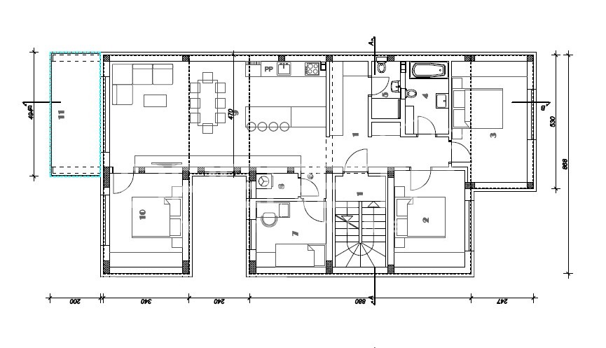 Sastoji se od ulaznog hodnika, prostranog dnevnog boravka u komunikaciji